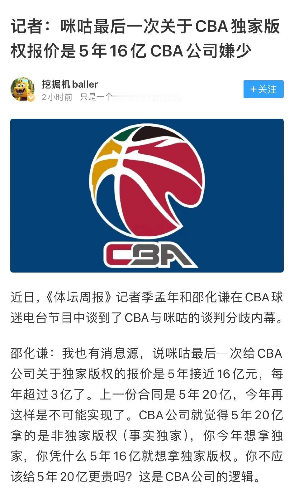 CBA独家版权5年16亿还不够? 真不明白,CBA这种观赏性很一般的赛事,转播权也能卖这么贵。 从另外一个角度来看,中国体育市场的潜力实在太巨大了。 想象一下,如果我们的中超,达到英超或者德甲的水平,那转播版权肯定是天价的。 可惜,这方面一直开发的不好。