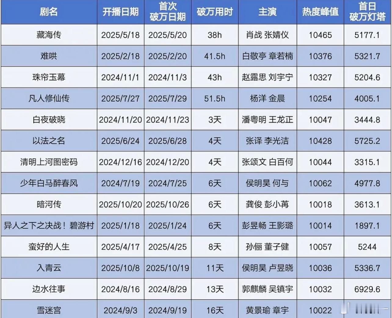 这么看,👖最对不起的是藏海传灯塔8000+,云合5800+,热度才9900+