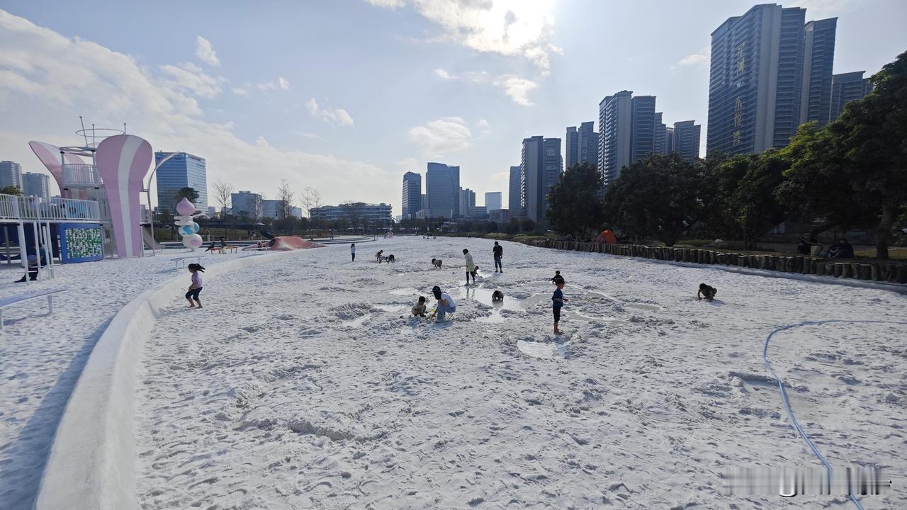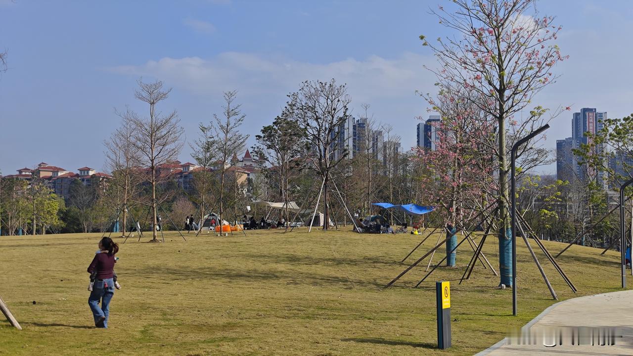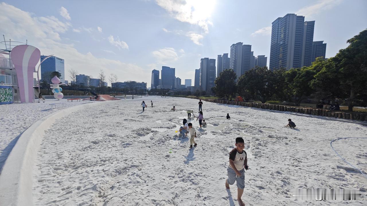 蕉门岛白沙滩,两个月后变成白沙漠了,只剩下一些小水池了。不知道是因为冬天天气冷不太适合搞水池还是真的就建好了就不管了。 比较神奇的是沙子还是依旧挺白的,没有预料中变黄或者变黑,不知道这些沙子到底是什么材质的。 白沙滩北边的大草坪也搞好了,成为又一个露营圣地,就是树荫太少了点。
