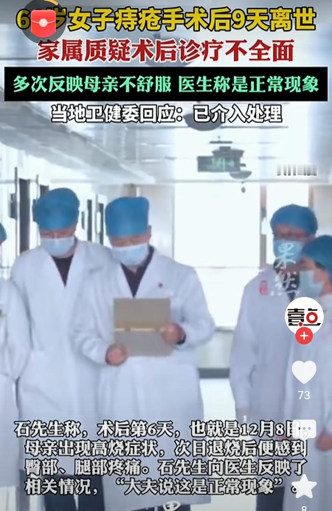 61岁女子痔疮手术9天后离世61岁阿姨的离世令人痛心,愿家属能得到合理的解释与安抚。卫健委会介入调查是关键,期待查清原因后,推动医疗流程更完善,守护好每一位患者的安全。[祈祷][祈祷][祈祷] 评论打卡任务 上热门