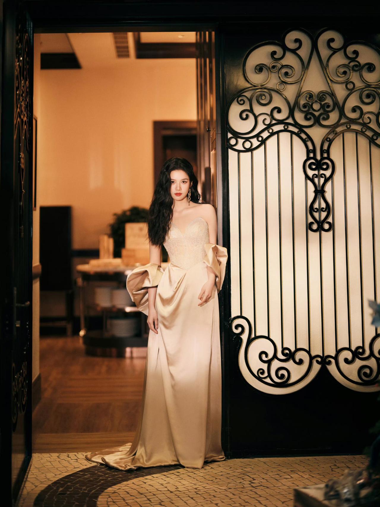 angelababy压轴亮相芭莎艺术之夜 金色拖尾礼服是女神归来的鎏金战袍,ba