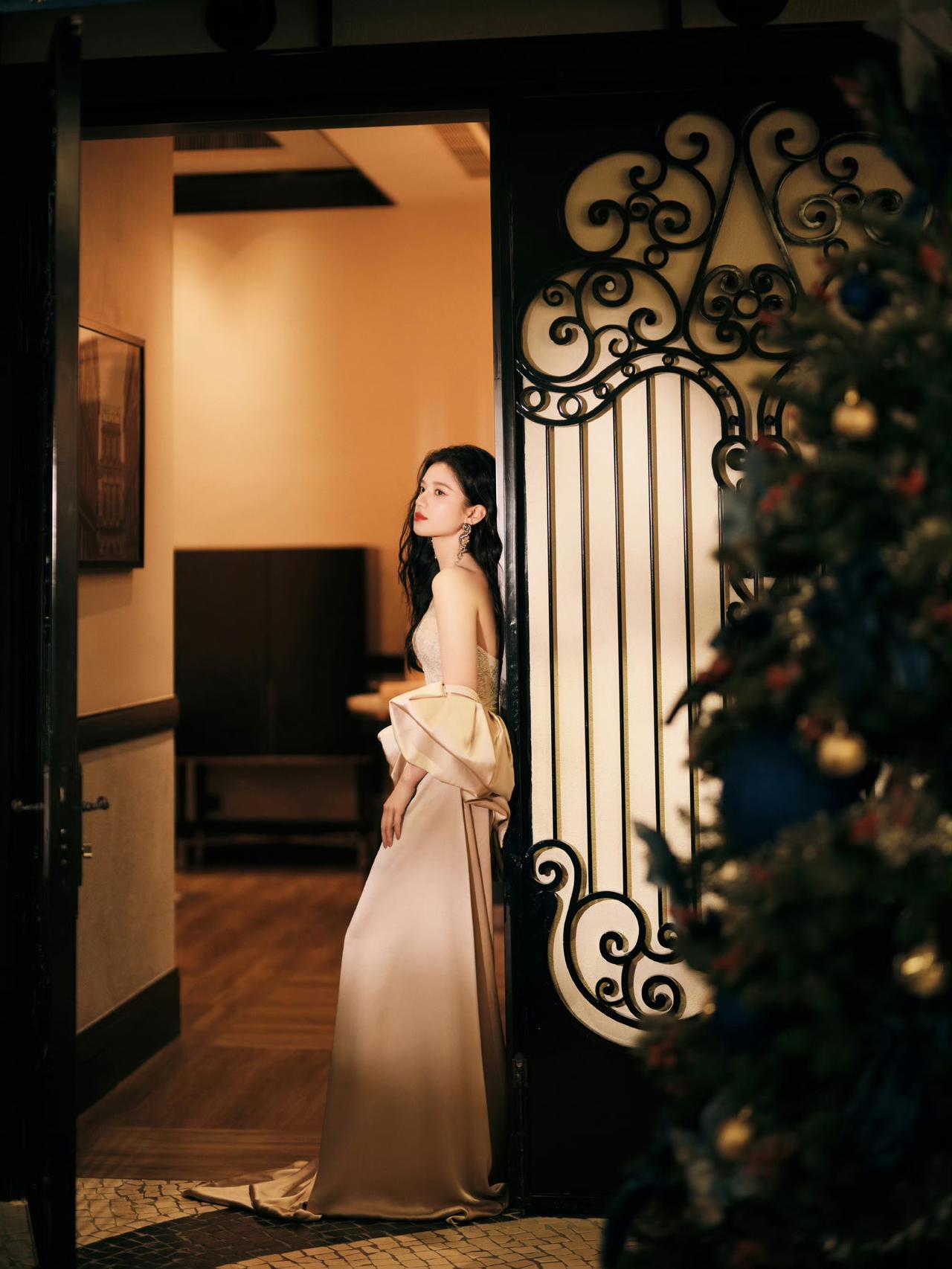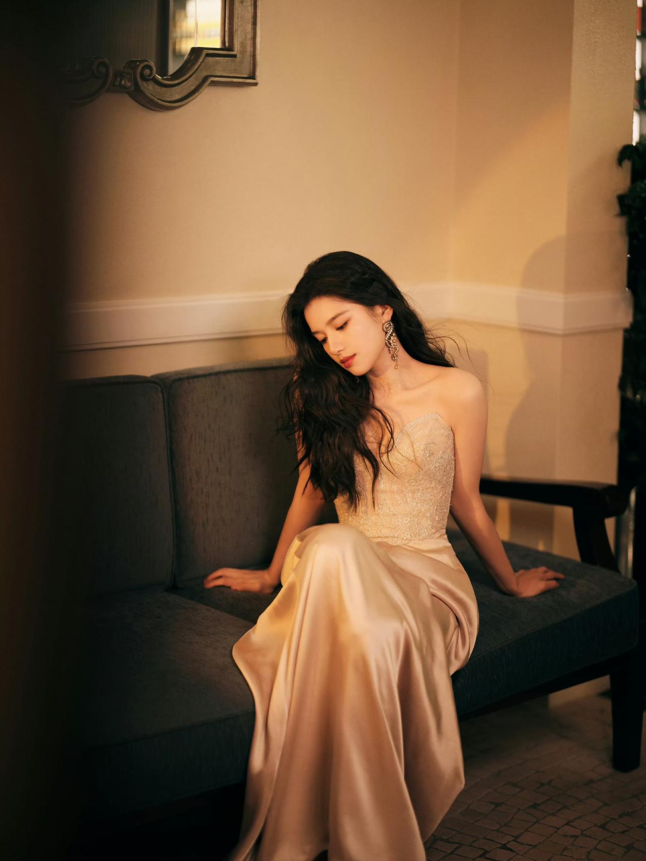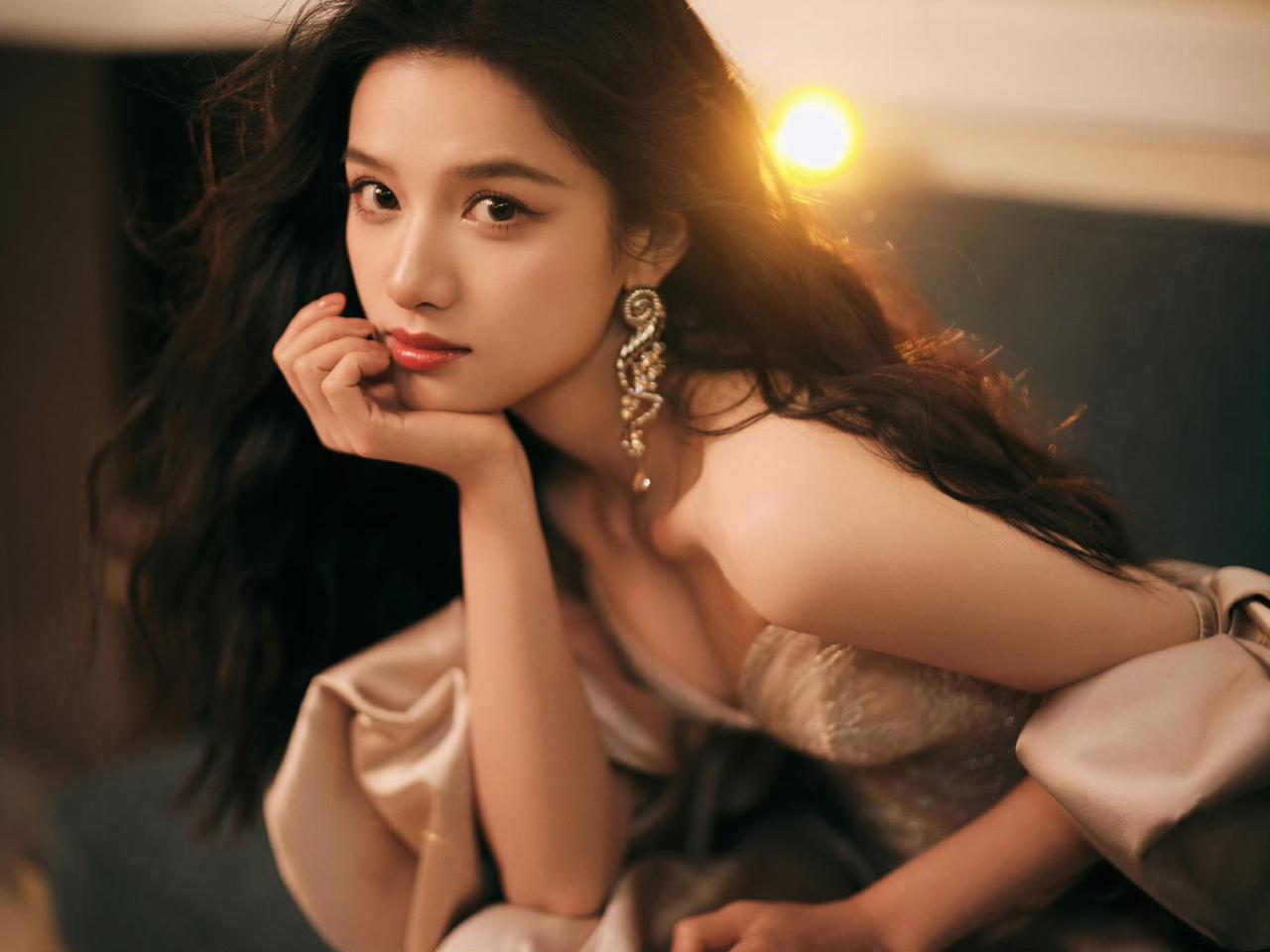 优雅红唇,复古耳环,温柔光影下的迷人女子张婧仪!