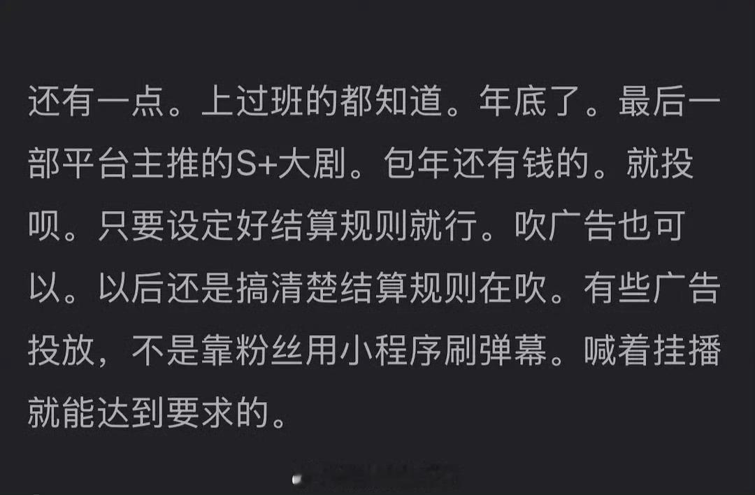 流量播剧,新手期不达预期无法破万,品牌播出后进场,会在套餐上给的优惠力度大一些。也就是说播出热度不达标,只吹广告其实没有意义?这让你想到哪部剧?🤔