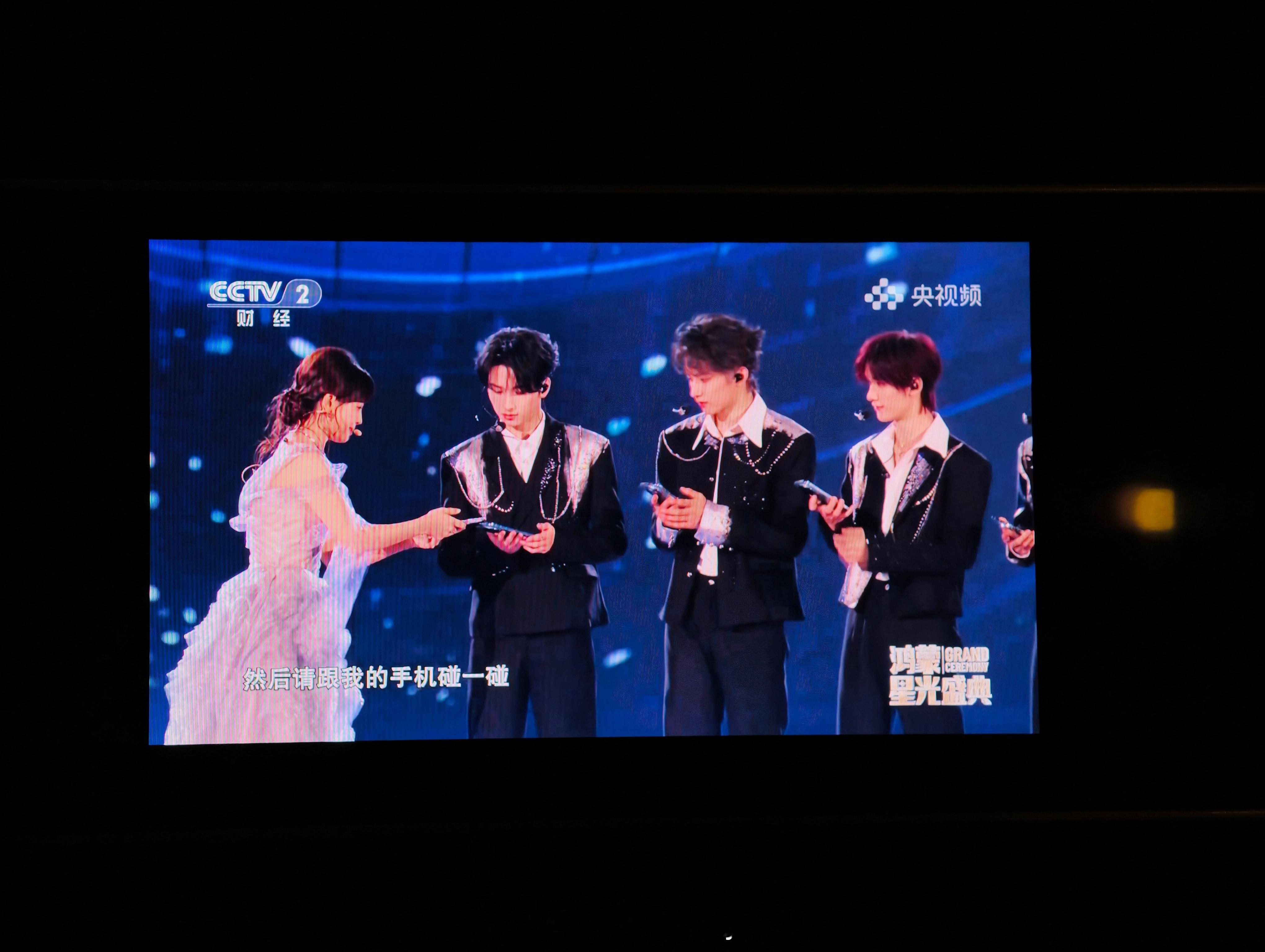 坐在全新问界M7里,用副驾屏幕看鸿蒙星光盛典。现场展示鸿蒙功能的妙用,王冰冰手持华为Mate X7和时代少年团合照。时代少年团开场 华为Mate 80碰一碰分享照片,原图传输超快。第二代红枫影像超出片,鸿蒙系统超好用,贯彻的真到位。