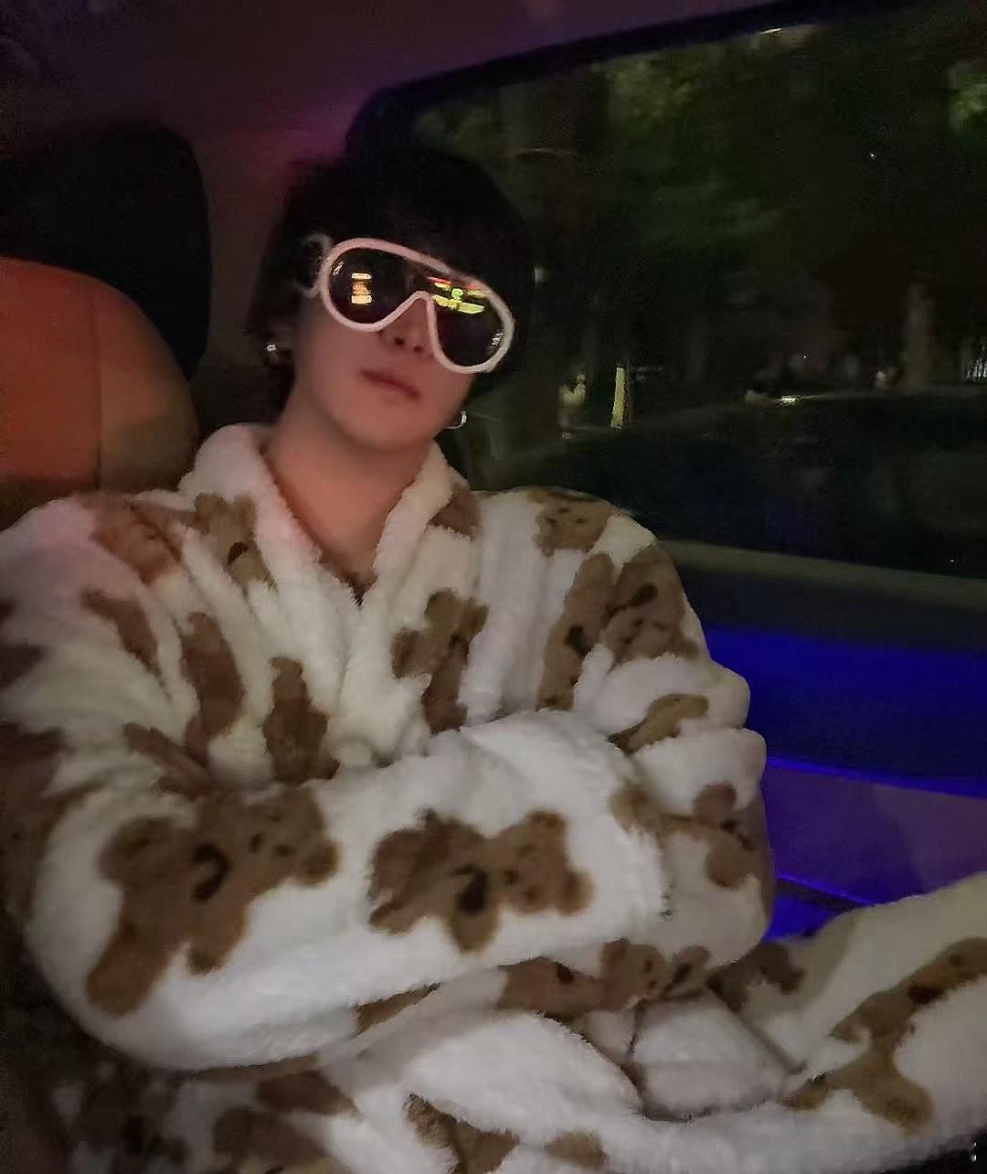 吴艳妮在成都穿着短裤大腿看起来很粗壮,表情自信又张扬
