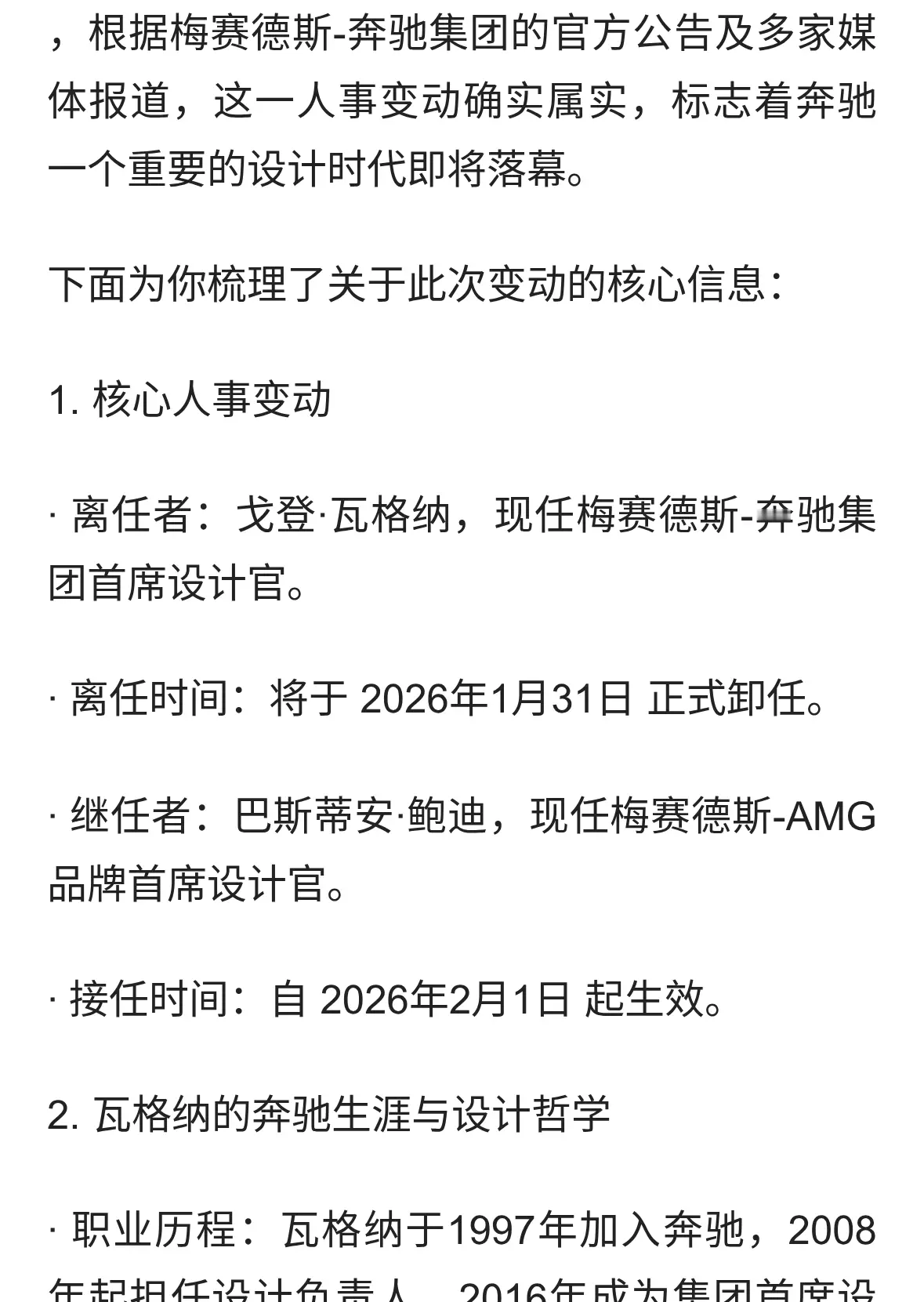 关于奔驰首席设计官戈登·瓦格纳离职的消息