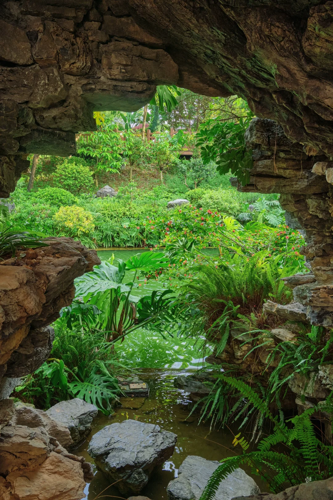 这里的假山石洞堪称一绝!这里不仅有叠石成山的巧思,还有曲折幽深的洞穴,仿佛一个小型的“地下迷宫”。