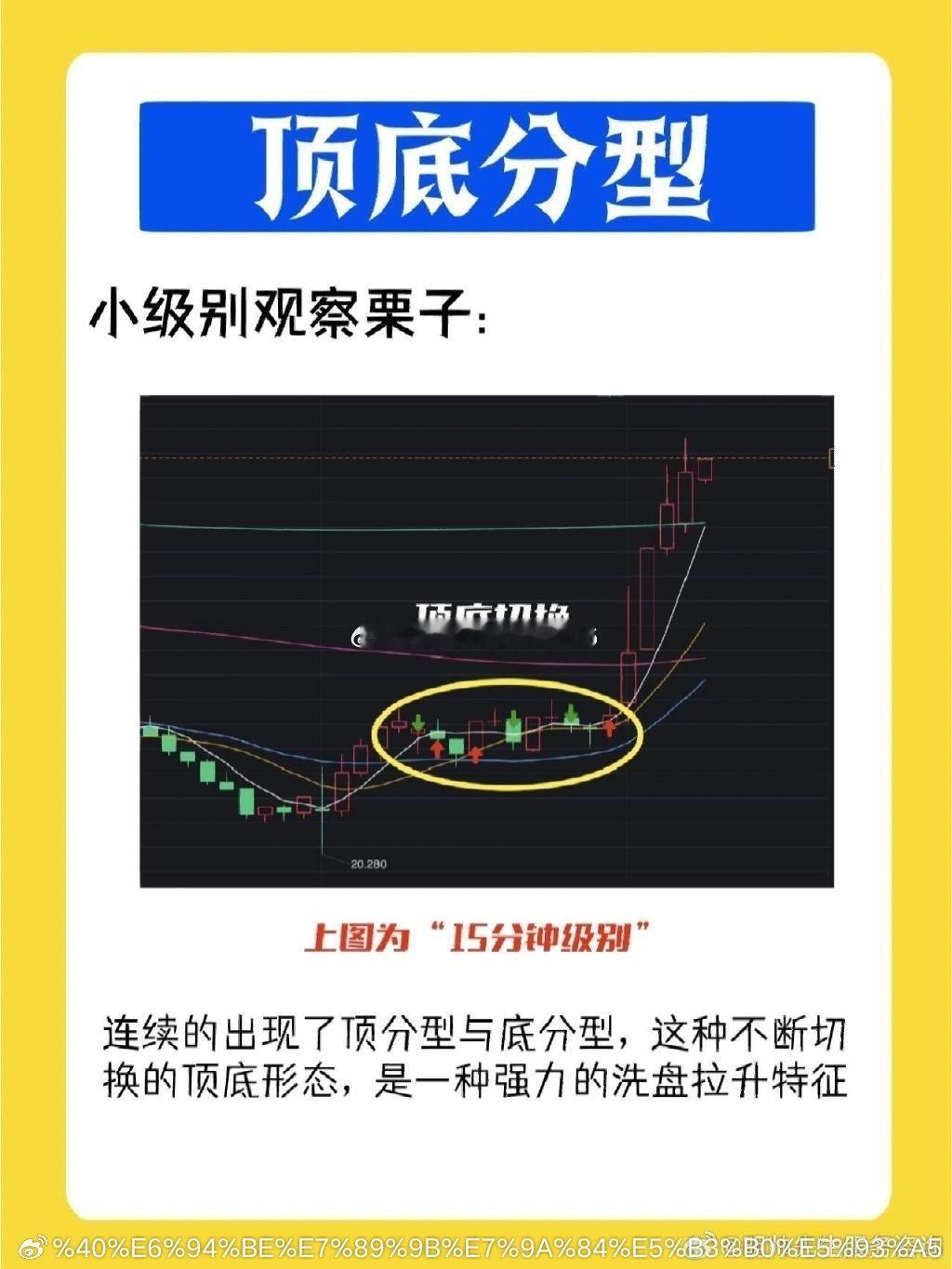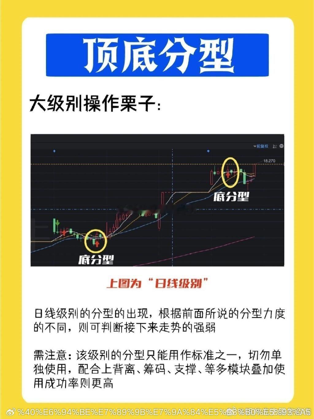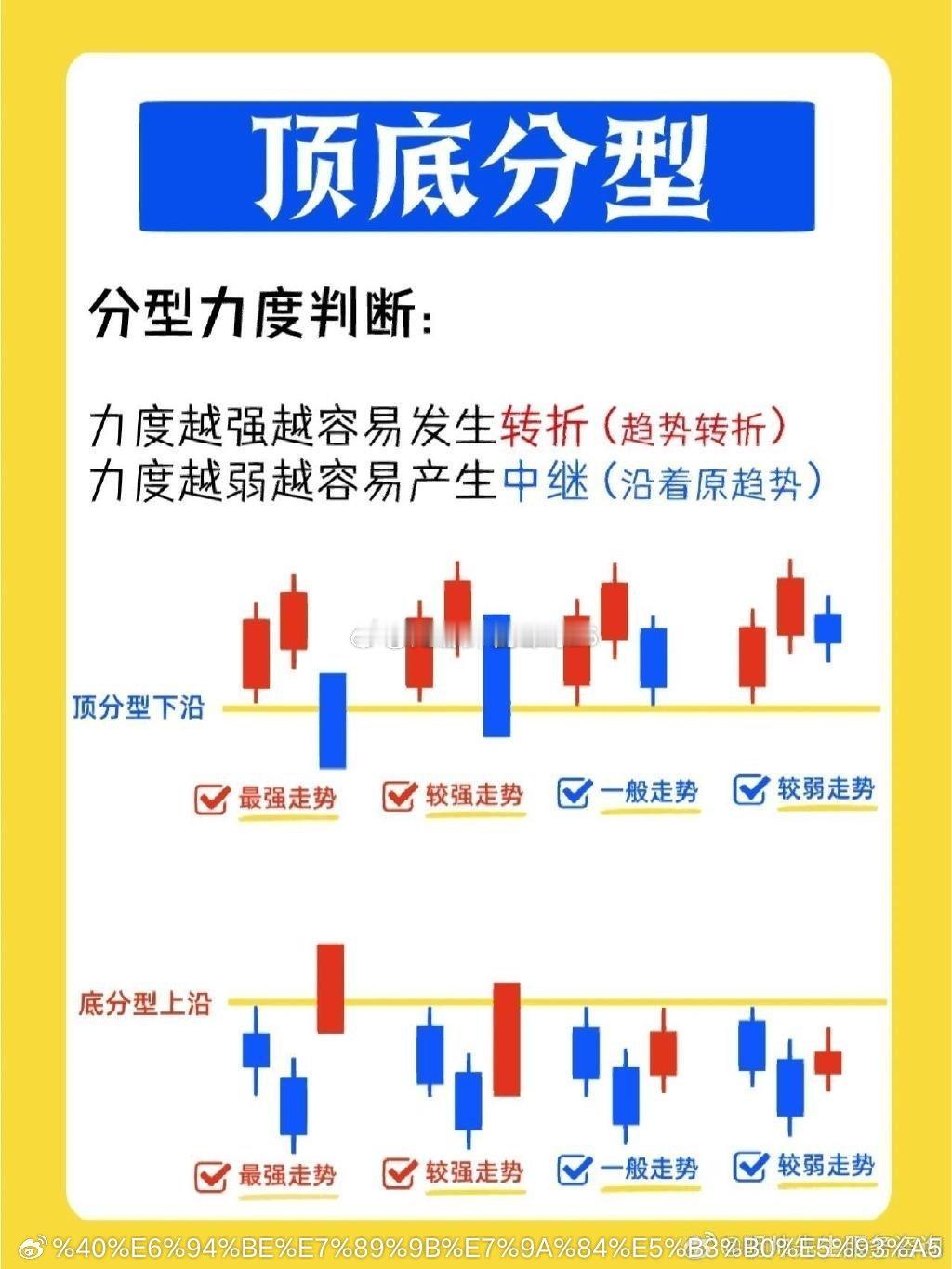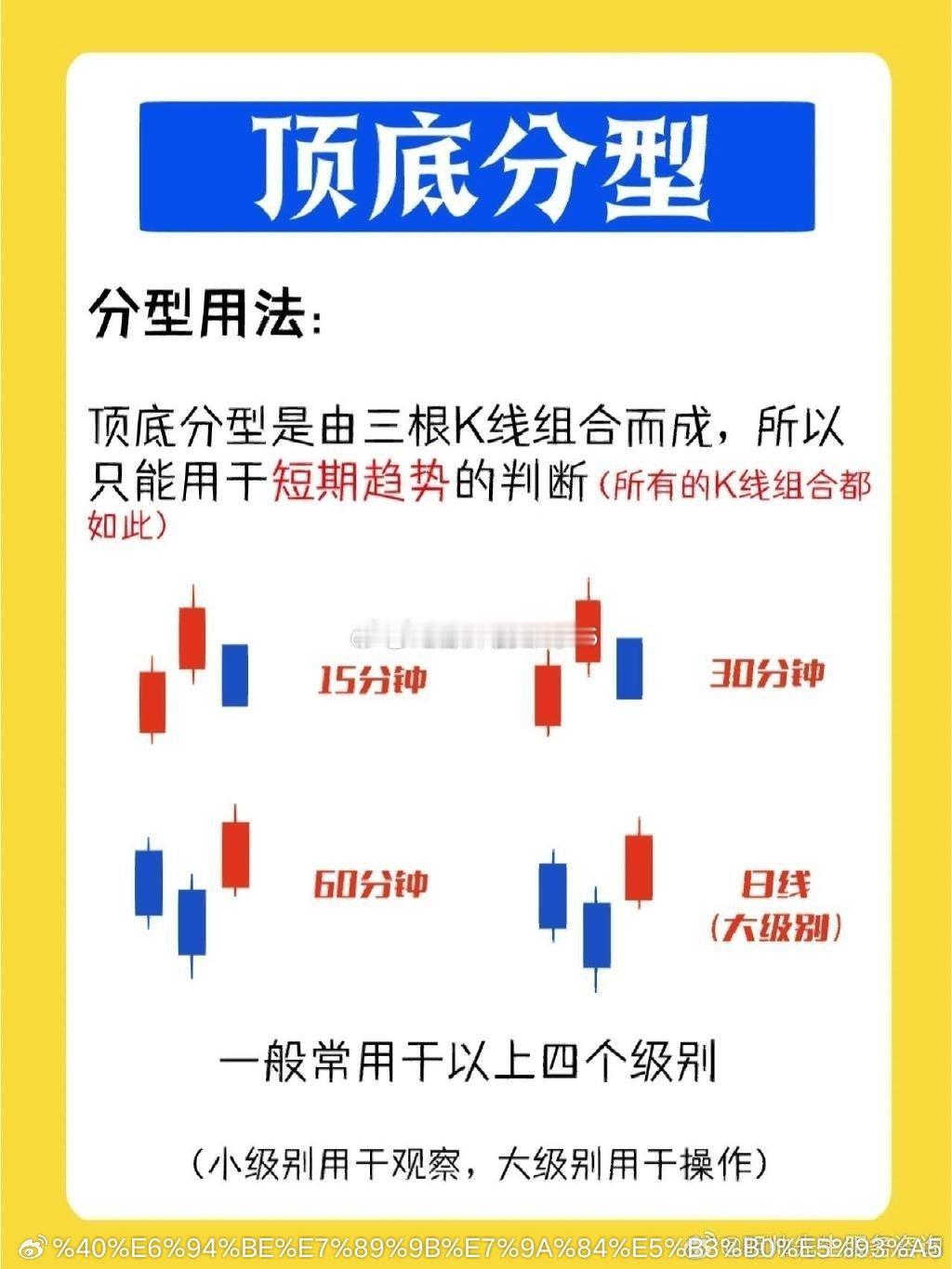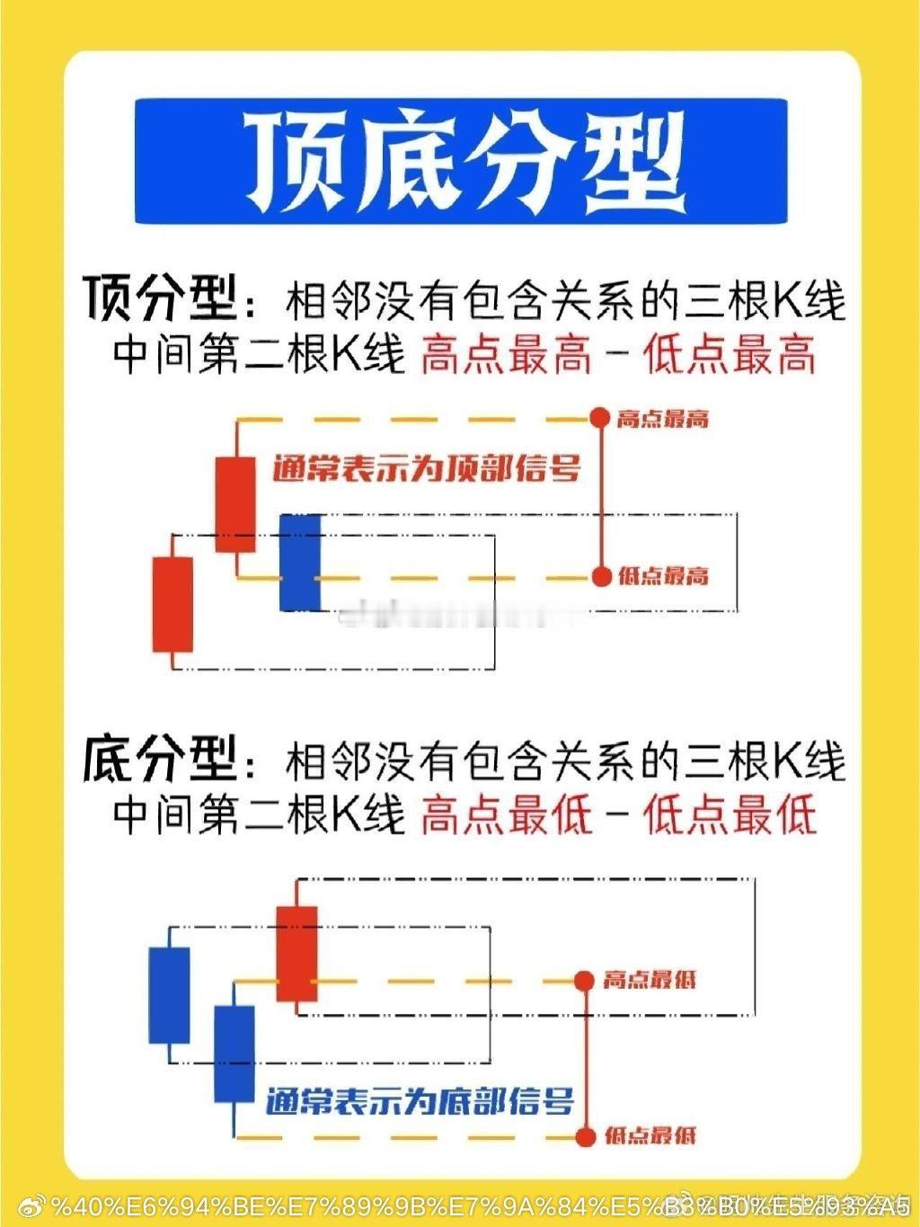 学会缠论〰️顶分型与底分型顶分型定义:三根不存在包含关系的相邻k线中,中间第二根k线,高点最高,低点最高底分型定义:三根不存在包含关系的相邻k线中,中间第二根k线,高点最低,低点最低顶底分型是缠论中非常重要的组件,任何的转折必然伴随分型的产生,但分型的产生并不意味着走势的转折,所以分型只是单一的标准,实战中需配合其他模型一起使用,例如:背驰、筹码、支撑等等