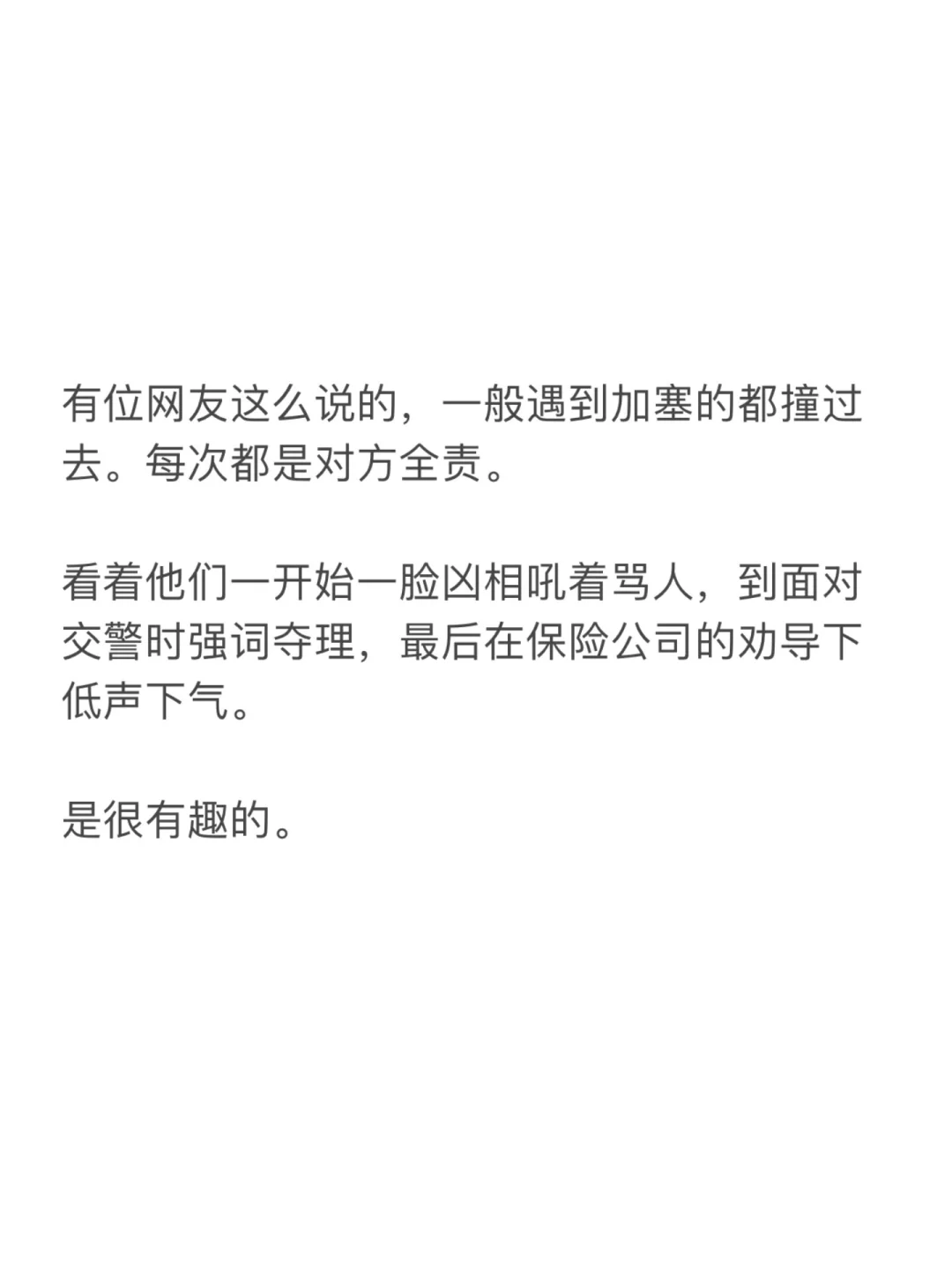 5⃣️有位网友这么说的,一般遇到加塞的都撞过去。每次都是对方全责。