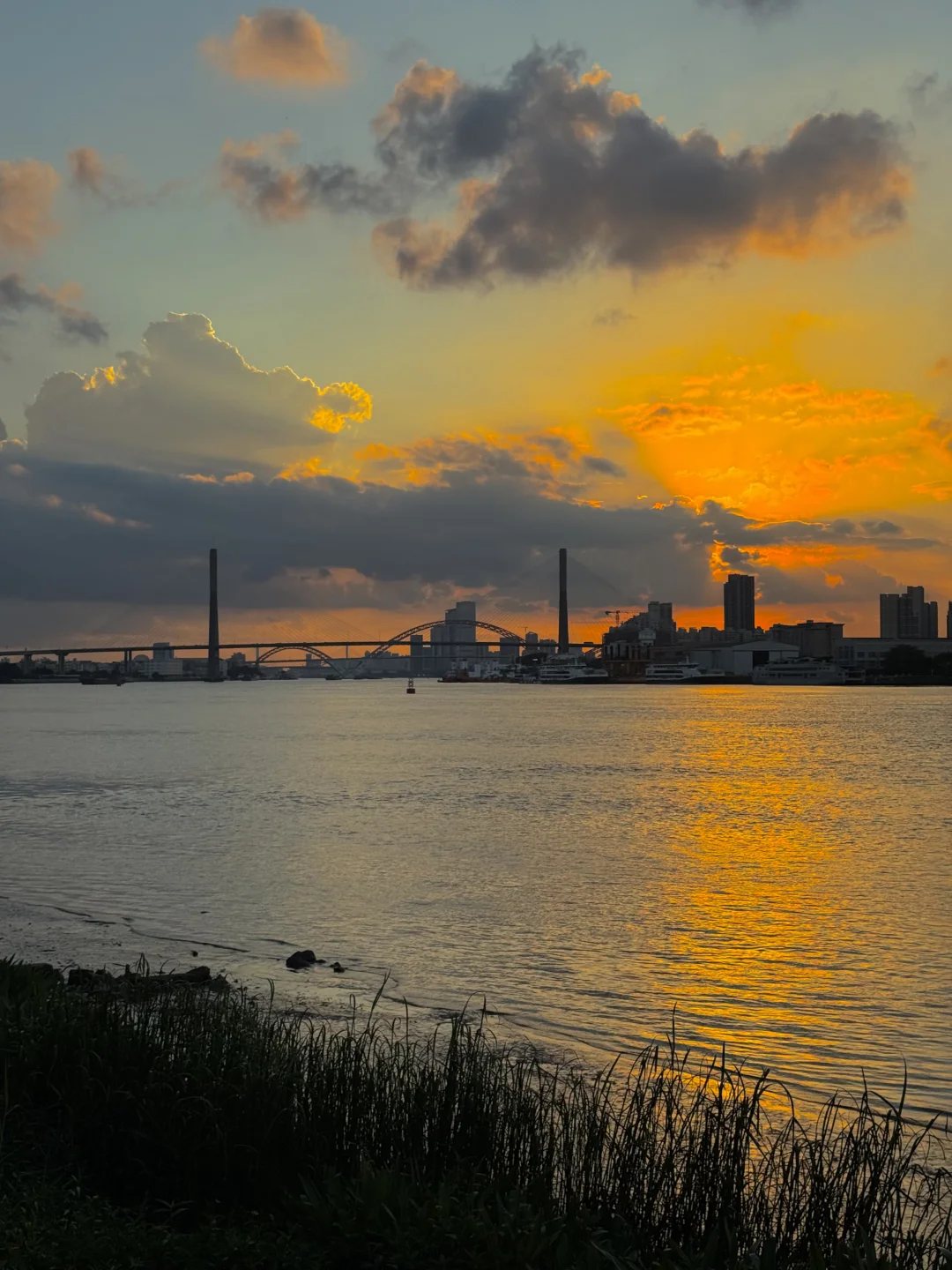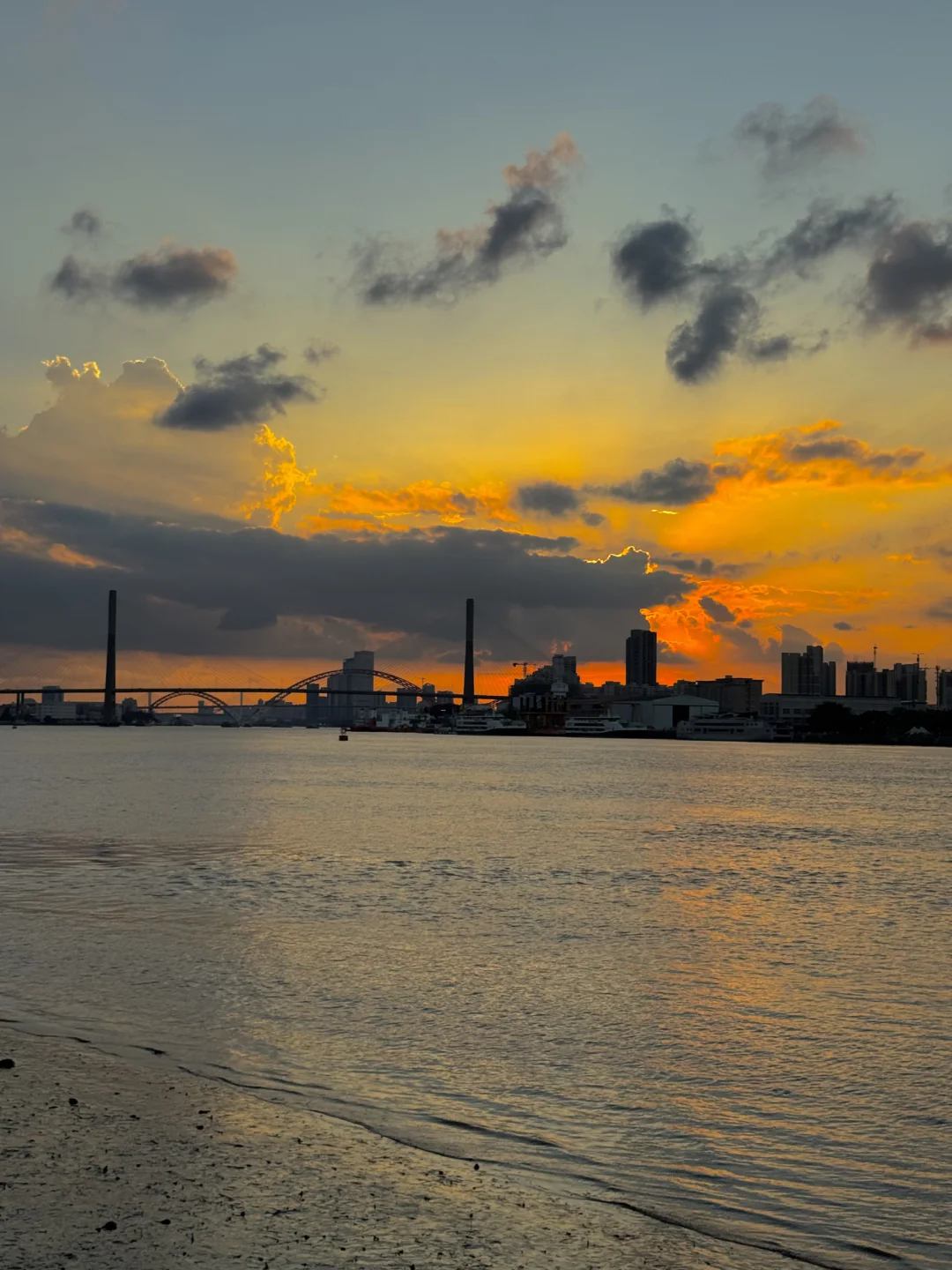 打工人今日份治愈是广州天空给的!💥 下班冲来大学城追落日,直接被眼前景象美到窒息—— 整片天空像被打翻的橘子汽水🍊,云层镶着滚烫的金边,珠江水面碎金流淌… 这才是广州夏天傍晚的顶配打开方式啊~ 📍大学城湾咀头湿地公园 🙋🏻♂️🙋🏻♂️想看看你们今天拍的的夕阳~