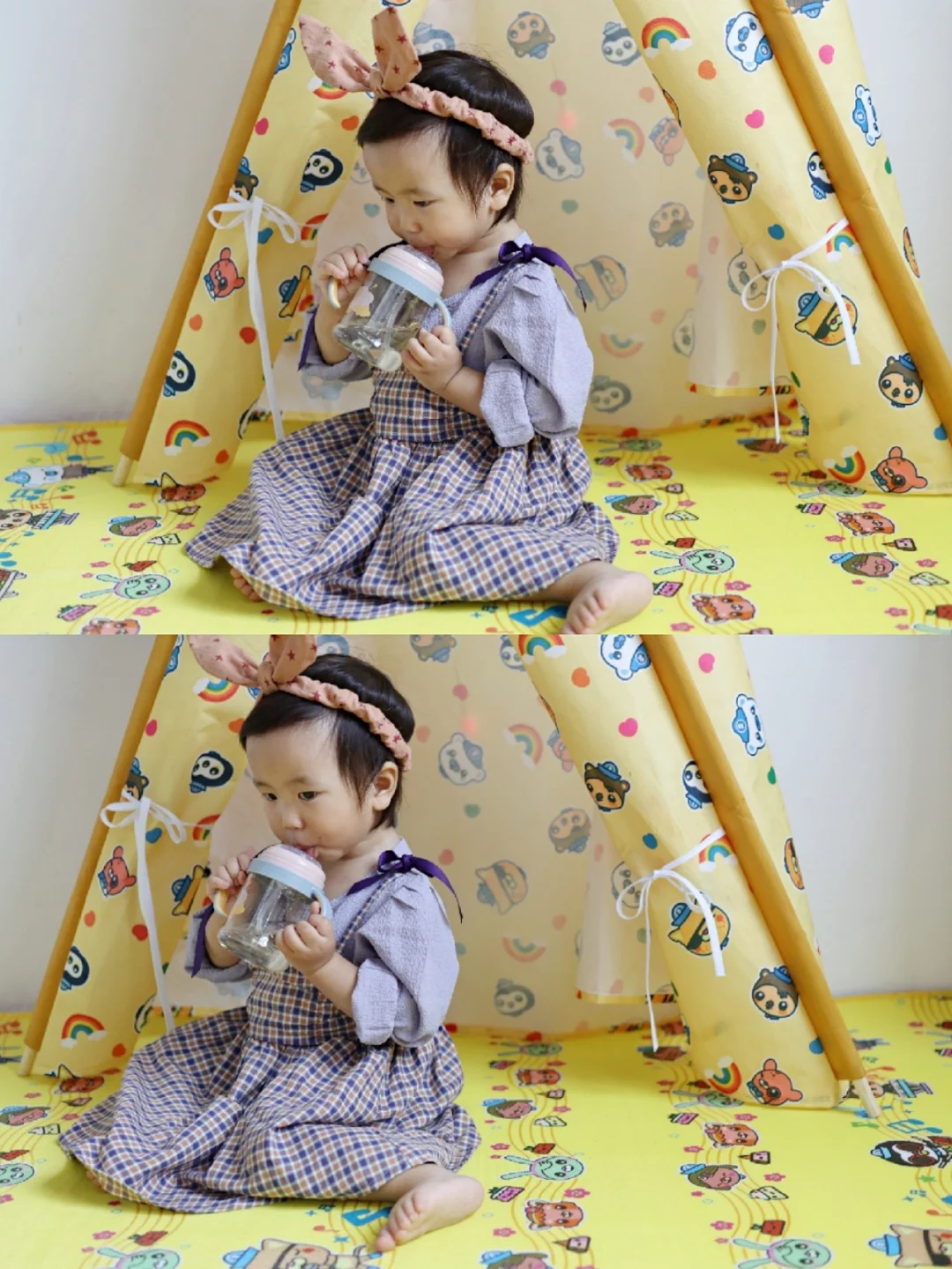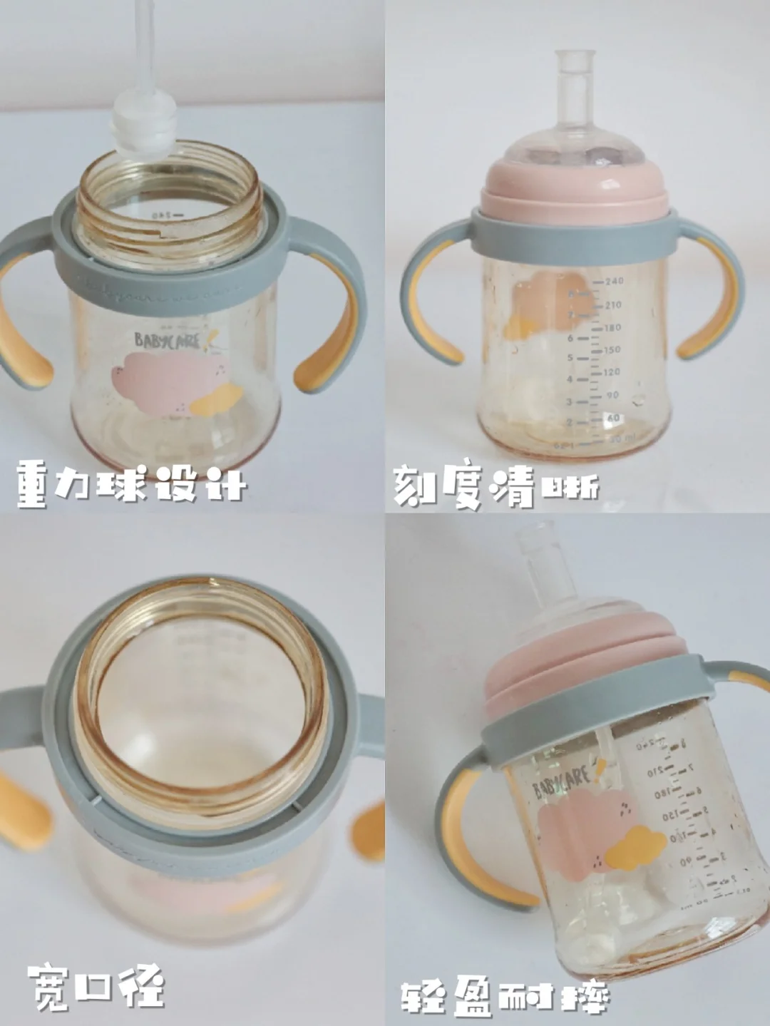 Cyndi还没出生前我就囤了好多Babycare的东西,奶粉分装盒、饮水杯、浴巾。。。。使用感都挺好,所以看到他们出了这个🍼️就毫不犹豫入手啦,哈哈😄好抓握、好清洗、耐摔、有重力球可任意姿势喝奶喝水,我敲满意的👏