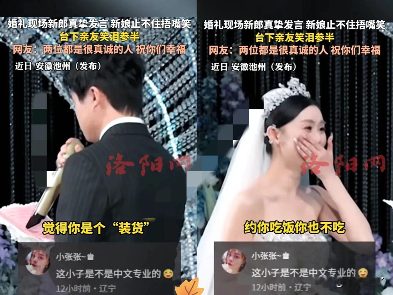“这就是爱情啊!”安徽池州,一对新人结婚,新郎致辞时,掏出提前准备好的“小作文”,把发言变成了他的脱口秀,开篇就语出惊人的说道:“我追求你的时候,觉得你是个装货! 一句“你是个装货”,瞬间点燃全场,最后却把新娘逗得又哭又笑! 别再被千篇一律的婚礼誓言洗脑了,这位新郎的“吐槽式告白”才是真浪漫! 他掏出提前写好的小作文,看似吐槽两年追求的“崩溃”,话锋一转却满是宠溺,直言知道新娘胆小,愿意放慢脚步照顾她的小情绪! 这种带点烟火气的真诚,比任何华丽辞藻都更打动人! 好的爱情从不需要刻意煽情,那些藏在吐槽里的包容与温柔,才是婚姻最珍贵的底色! 比起按流程走的仪式感,这种走心的表达更能让婚礼成为一辈子的回忆!