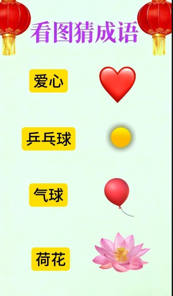 “爱心+乒乓球+气球+荷花”打一成语? 答案藏在谐音里——“爱乒(爱拼)才会赢”。 上周我刷到这条抖音,主播连麦让网友现场喊答案,答对就能听见对面宿舍爆发出“卧槽我赢了”的原声,比弹幕刷屏爽三倍。 数据说这类视频互动量翻三倍,我信,因为我妈——一位海淀语文老师——已经把同款卡片塞进课堂,娃们抢答声音盖过下课铃。 娱乐和知识点一起炸,比单纯搞笑耐嚼。 下次直播,我准备挂一张“辣椒+梯子+月亮”的图,猜中就送自家辣椒酱,输了连麦唱《辣妹子》,敢来吗?