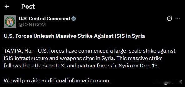 美国中央司令部确认发起“鹰击”空袭行动,并表示打击目标为“伊斯兰国”的基础设施和武器设施。 具体是何种武器设施尚不明确,但已知恐怖分子在叙利亚沙漠地带栖身于废弃房屋及地下隧道中,并在其中储存轻武器和爆炸物。 此外,他们得以存活还依赖幼发拉底河沿岸部落的默许支持,武装分子从这些部落获取补给物资。 美国官方代表在福克斯新闻节目中表示,在叙利亚的“鹰击”行动中,美军确定了70个目标。 据悉,约旦空军参与了美国对叙利亚沙漠地区的“伊斯兰国”阵地的空袭。 美国中央司令部在空袭中动用了F-15E战机、A-10A攻击机以及AH-64E直升机。