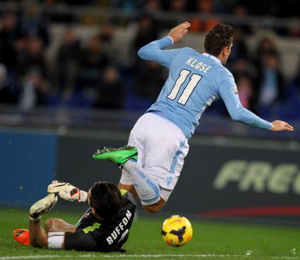 【意甲-克神造点布冯染红狮王救主 尤文1-1止12连胜】北京时间1月26日,意甲第21轮,尤文图斯客场1比1平拉齐奥,终结联赛12连胜,无法追赶国际米兰保持的17连胜纪录。克洛泽制造点球并导致布冯被红牌罚下,坎德雷瓦主罚命中。略伦特头球扳平。克洛泽和替补凯塔射中门框。尤文图斯