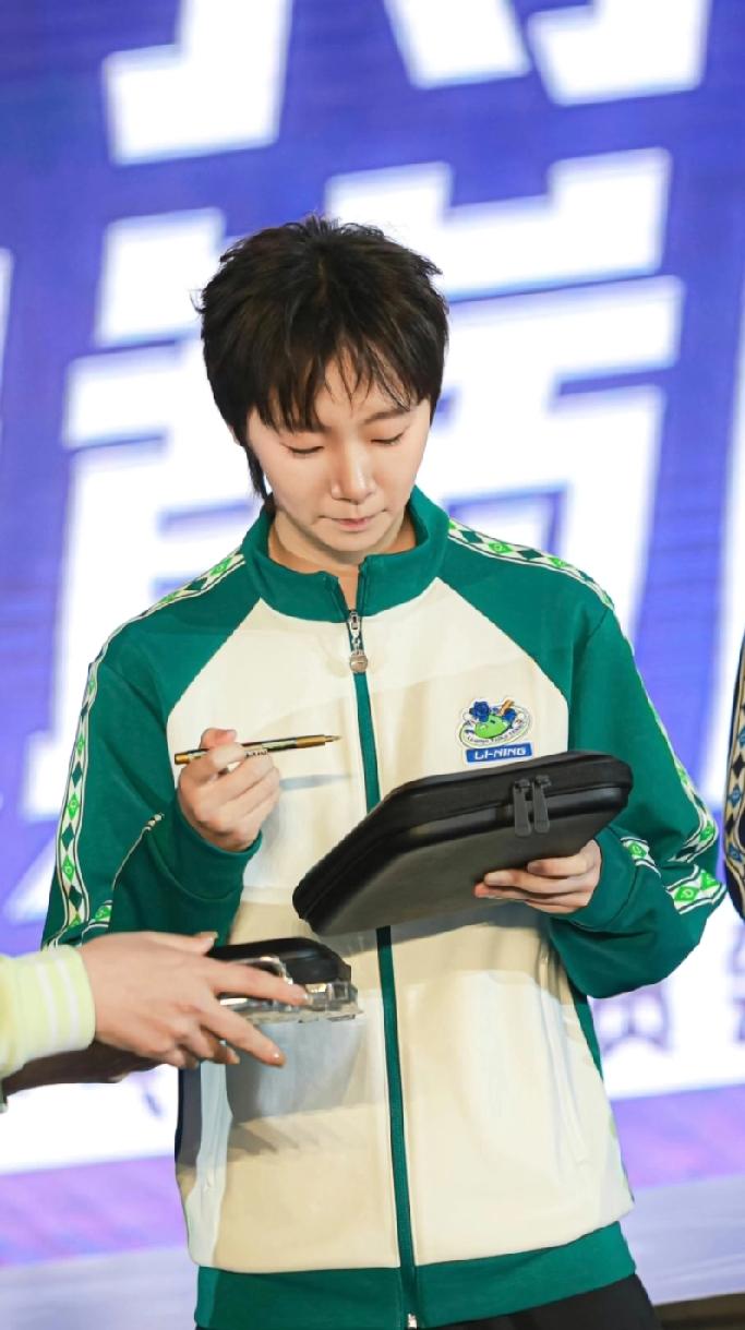 王曼昱李宁乒乓订货会造型太绝了 蹲到王曼昱2026FW李宁乒乓产品订货会现场高清图啦!这下直接被惊艳到~利落的短发搭配绿白拼色的李宁运动服,清爽又飒气,曼昱的颜值和气质真的越来越能打,这造型谁看了不说一句绝!✨ 王曼昱 李宁乒乓