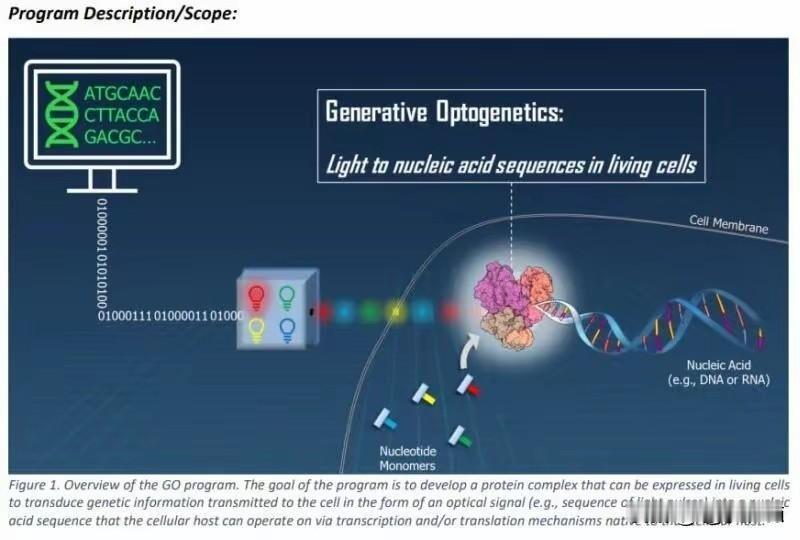美国五角大楼启动新一代“低成本”生物武器量产研发,依托DARPA生成式光遗传学项目研发核酸编译复合体,结合CRISPR技术,用光线精准操控细胞基因编程,实现生物武器“非物质化”量产,降低成本、加速进程且隐蔽。 Scope: Generative Optogeneti Light to nucleic acid sequ The gnals of th )11010 头杀@黄胜 oroaram, The am is to de o a orotei ion transmitted to the cell in the form of an optical signo host can operate on via transcription and/or translatior
