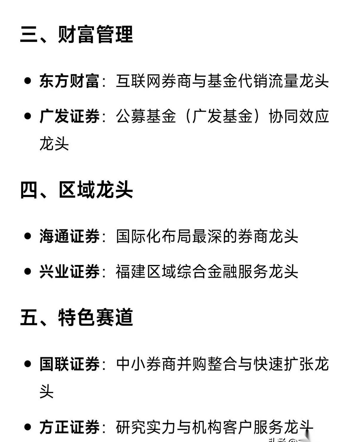都说股市是江湖,那券商就是这江湖里的各路门派。 你以为都一样?水深着呢。 有些名字,生来就是坐头把交椅的。 比如中信,就不用多说了吧,妥妥的带头大哥,家大业大,什么生意都做,什么都强。旁边还有个华泰,不跟你拼蛮力,人家玩的是科技,是脑子,拿个手机就把你的钱安排得明明白白。 然后呢,有些门派,轻易不出手,出手就是大活儿。 中金,那就是老钱贵族,专门伺候大老板、大公司上市的,普通人你都摸不着它的门。国泰君安就像个勤奋的工头,新股发行、公司发债,一单接一单,量大管饱。 但说到底,跟咱们老百姓关系最近的,还得是东方财富。 这哥们儿简直就是券商界的拼多多,管你什么门派出身,流量就是王道,几亿人都在他家APP上看行情、买基金。你不得不服。 当然,江湖里还有各种“地头蛇”。 海通在海外吃得开,兴业在福建是绝对的老大。 也少不了那些眼睛里冒着火的“野心家”,比如国联,天天琢磨着把谁给收了,好让自己快点长大。 所以你看,这哪是炒股啊,这分明就是一部活生生的武林外史。 看懂了牌桌上都是谁,你才不会把自己当成唯一的赌神。