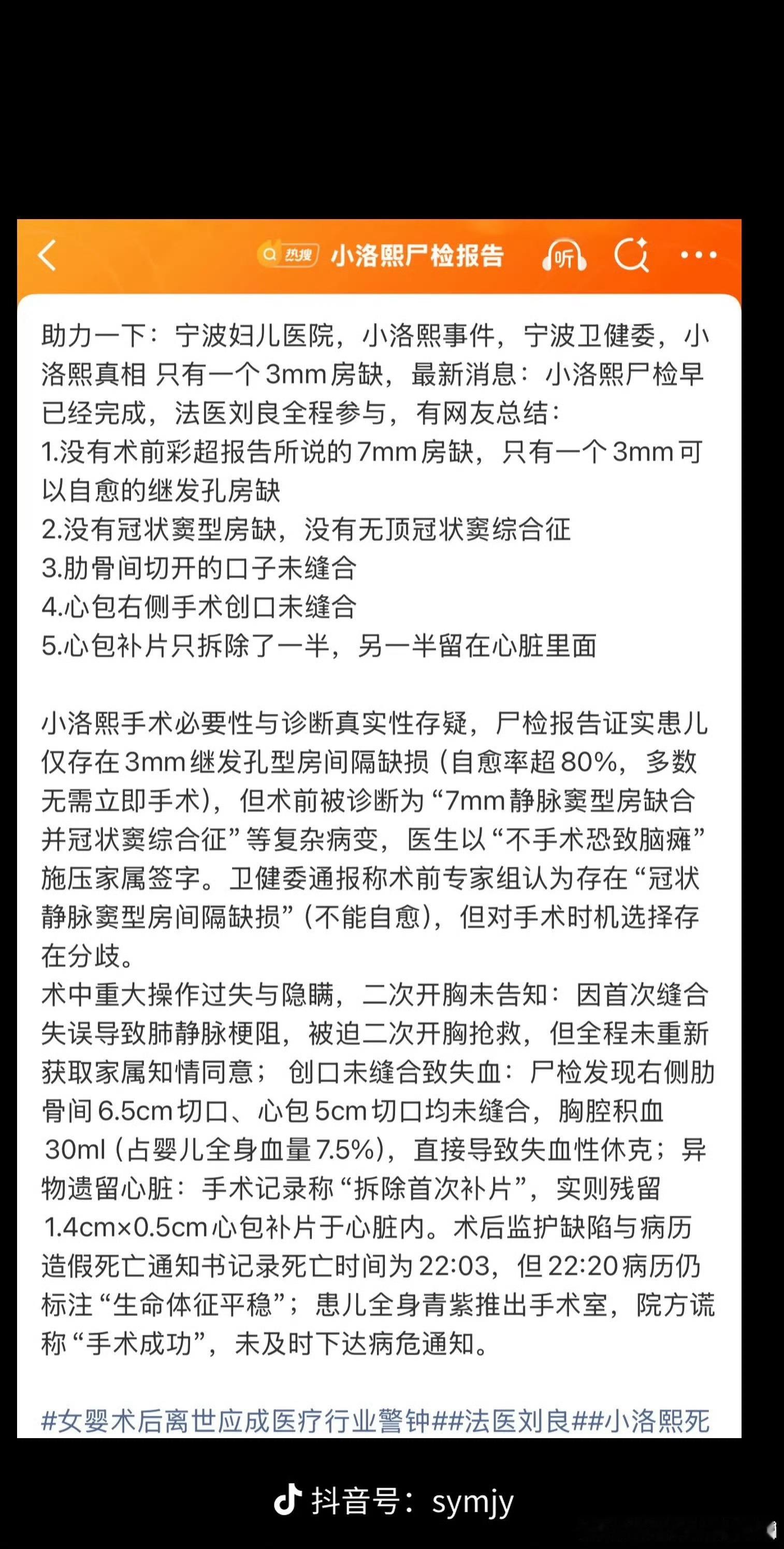 涉事医院否认小洛熙房缺为3mm兼听则明!刷了一周,宁波医院当然不愿意彻底公开对自己不利部分,浙江省卫生厅当提级依法调查并公开全部无死角事实。//术后记录上面写的//