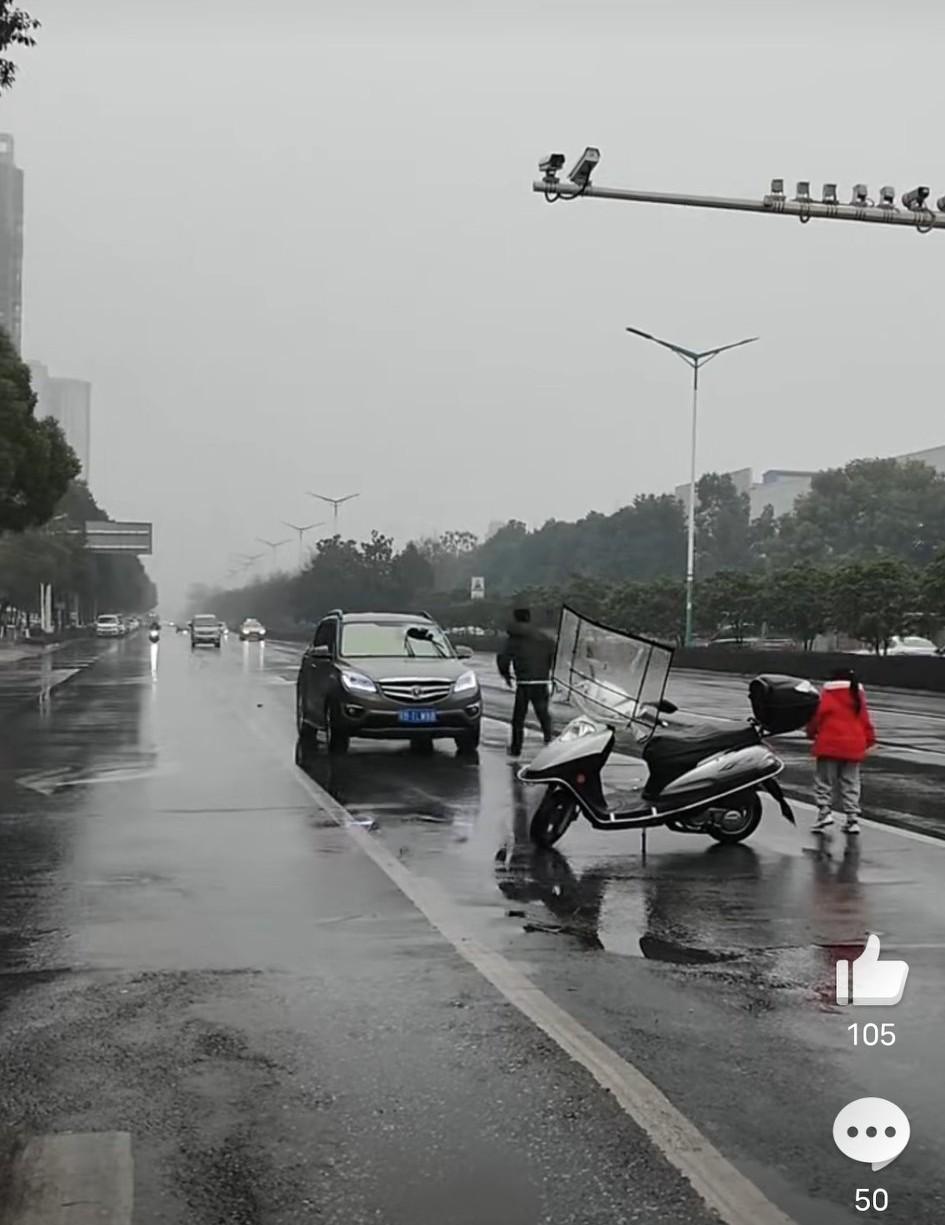 这位电瓶车车主是不是太暴戾啦? 疑是小车司机开车过水坑的时候过快,把水溅到了骑电