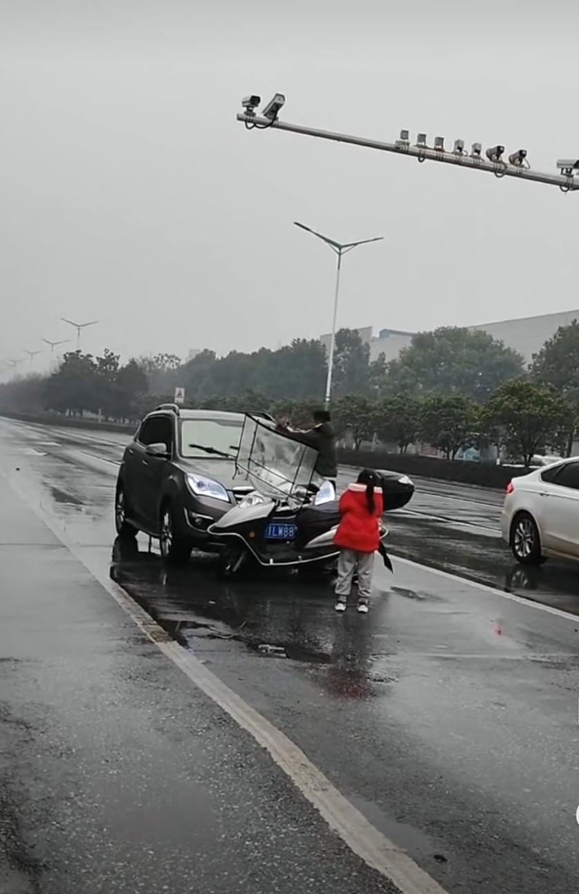 这位电瓶车车主是不是太暴戾啦? 疑是小车司机开车过水坑的时候过快,把水溅到了骑电瓶车的男子的身上,这个男的就拿尖锐物把小车的前挡风玻璃砸碎了,小车后退躲避男子的攻击,男子还不依不饶,追过去爬到车顶继续砸…… 边上穿红衣服的小女孩应该是男子的女儿,她全程看到了她父亲的暴力行为! 说实话,下雨天开电瓶车,你要不被溅到水,自己也要时刻注意来往车辆和路边的水坑,一味要求小车躲着你也是不现实的! 大家觉得呢?