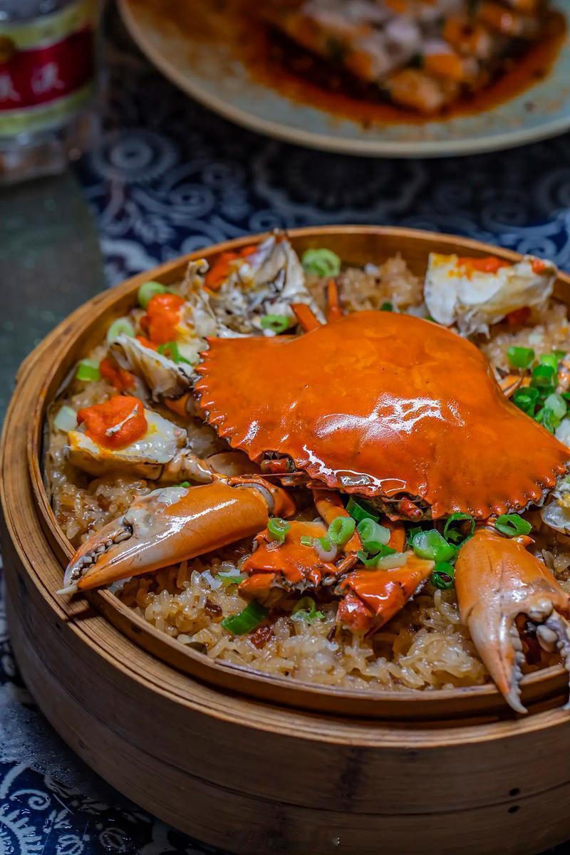 郑重向你们推荐一道我非常喜欢的福建名菜,八宝红蟳饭。😋八宝红蟳饭是福建省福州市传统名点,隶属闽菜系福州菜。该菜品以红膏青蟹(红膏蟳)与糯米为主料,配以火腿、鸭肉、猪肚等八种辅料蒸制而成,因用料丰富得名,具有咸鲜软糯的风味特征。