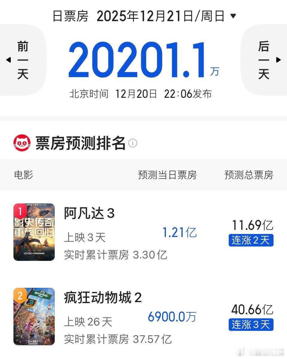 《阿凡达3》今天的表现超过了预测。预测今天票房1.58亿,实则1.66亿,超了近1000万。也因此,预测票房也上升至了11.69亿。明天结束前,《阿凡达3》票房应该能破4亿。看样子,《阿凡达》系列铁粉还是蛮多的。阿凡达3口碑阿凡达3
