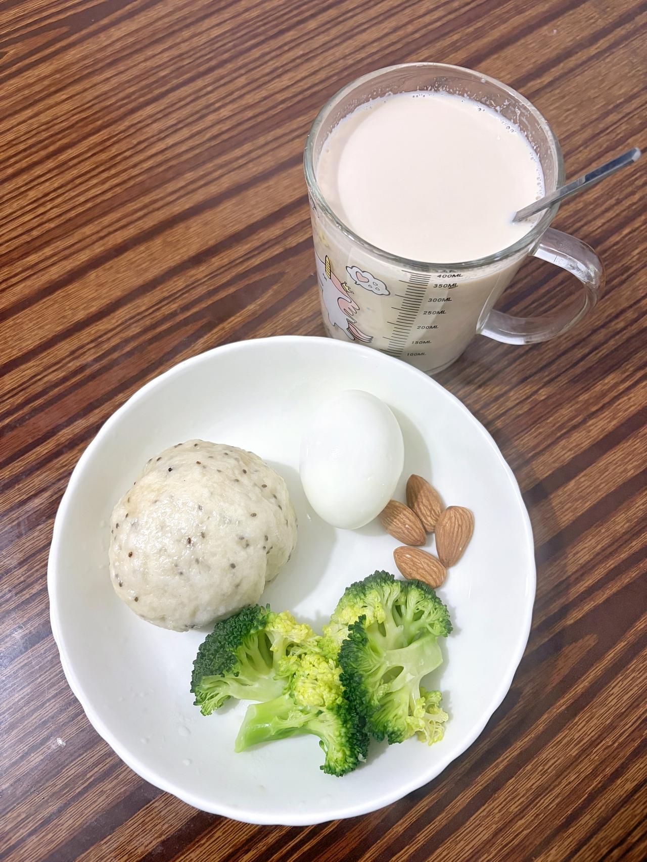 泪水打湿我的减脂餐,发誓瘦到103斤 今日减脂早餐:山药奇亚籽馒头+拿铁+西兰花+鸡蛋+坚果 体重管理
