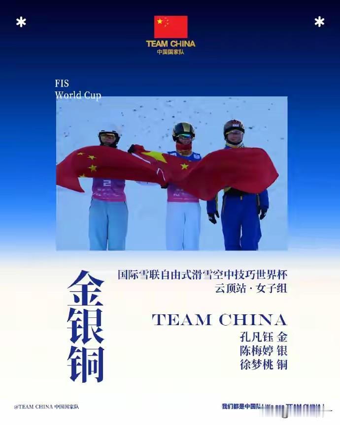 国际雪联自由式滑雪空中技巧世界杯云顶站女子组决赛,中国选手孔凡钰、陈梅婷、徐梦桃包揽前三名,集团优势明显,其中,孔凡钰跳出决赛中唯一过百的分数102.17,而资格赛中,陈梅婷更是跳出惊人的112.47 分,34岁的冬奥冠军徐梦桃资格赛仅排名第六,决赛逆袭进入前三,状态也保持得相当不错,她将向自己的第五次冬奥会发起冲击。