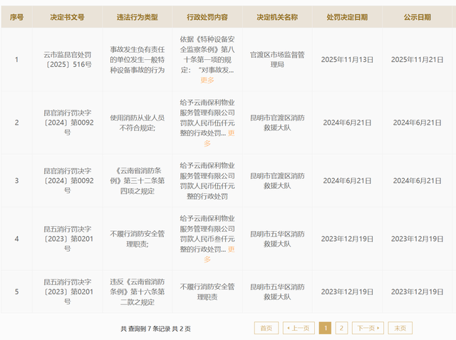 公开资料显示,云南保利物业服务管理有限公司成立于2008年,系保利置业集团成员,此前曾多次被消防救援部门处罚。
