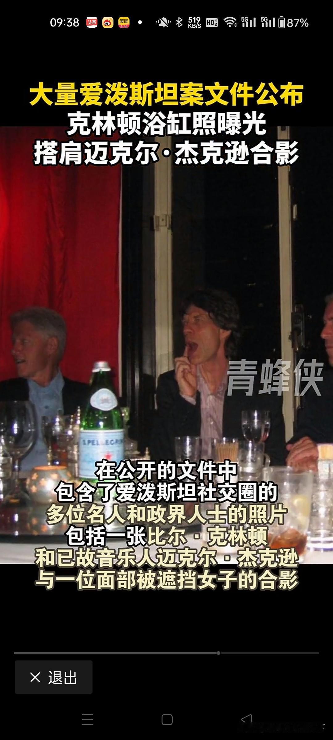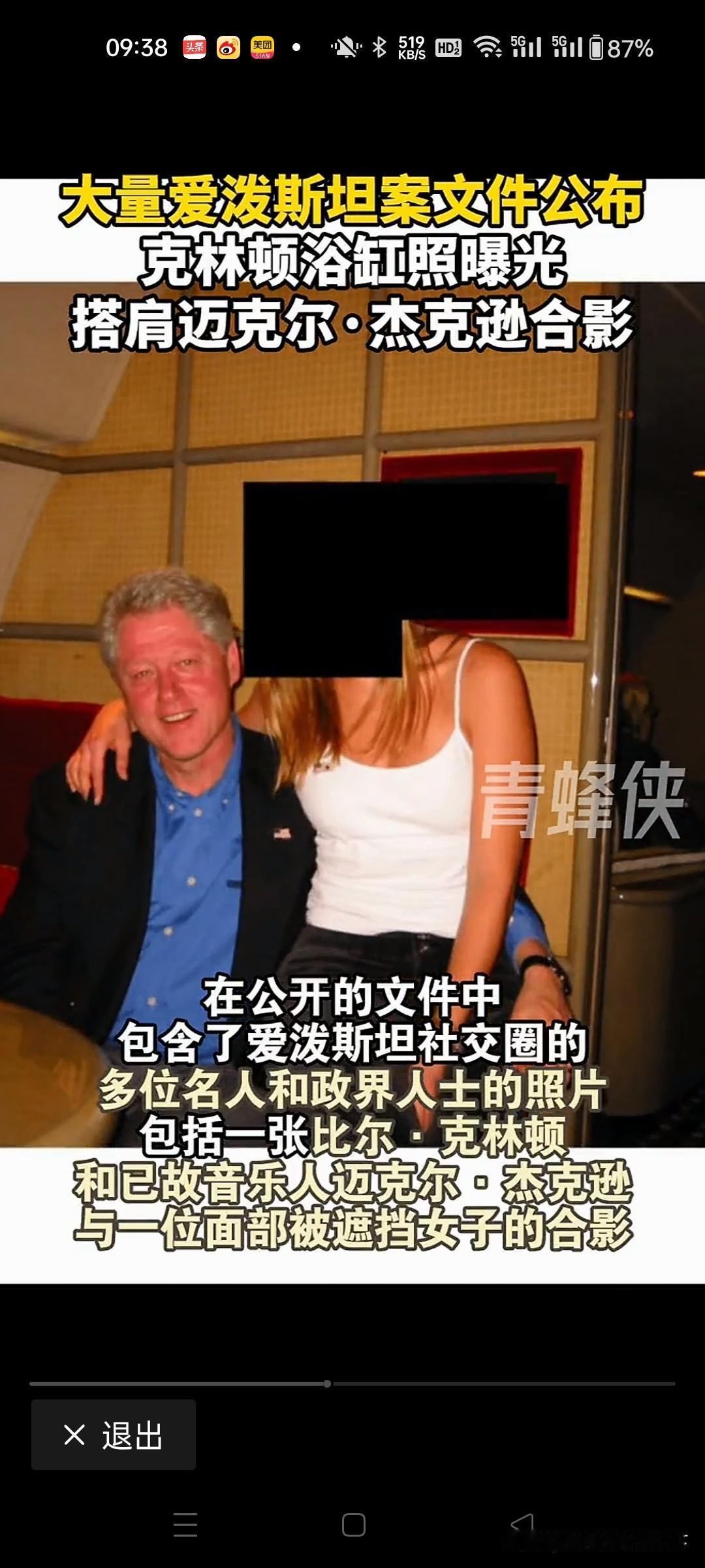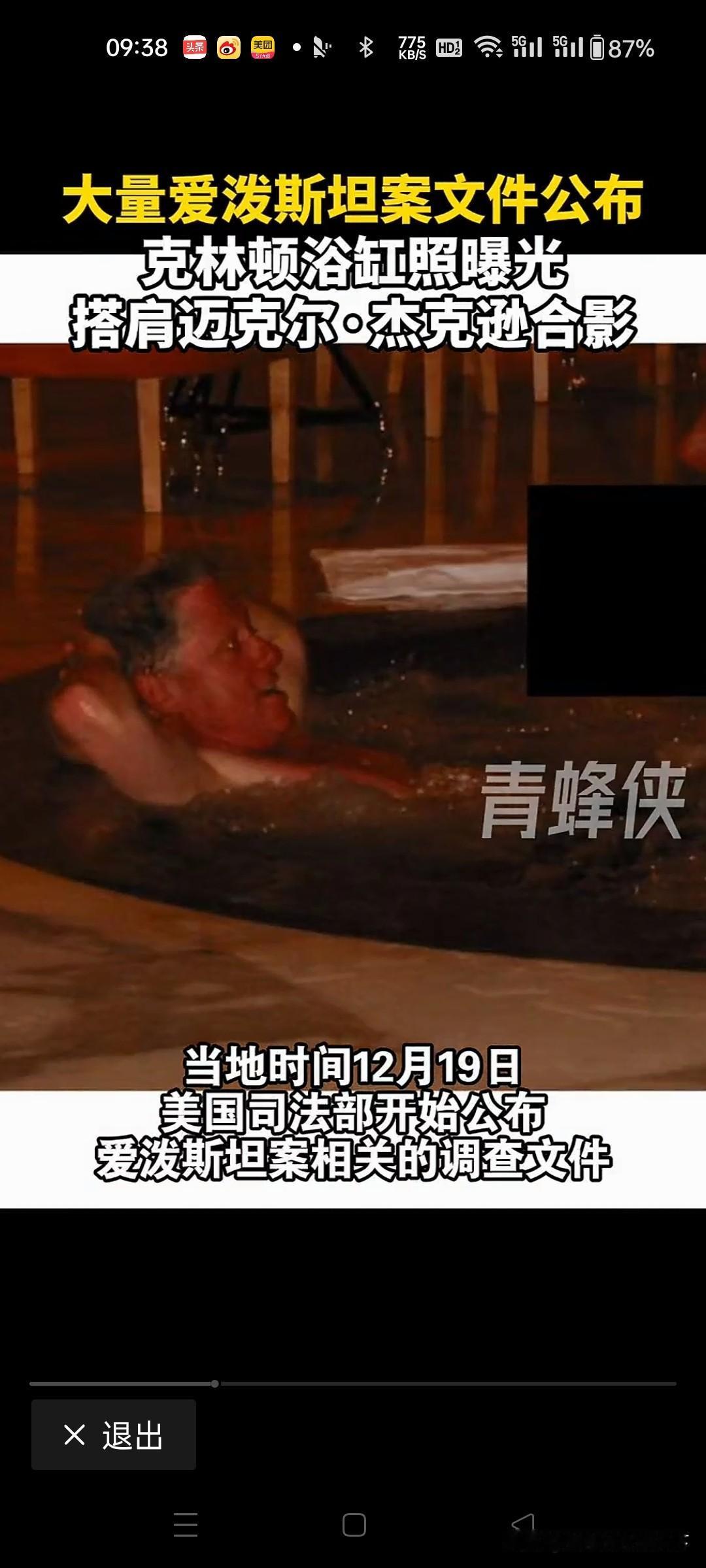 克林顿又风流了一回。克林顿与爱泼斯坦案受害者共浴照片披露,克林顿回应 当地时间12月19日,美国司法部公布了一批爱泼斯坦相关案件文件,其中包含多张美国前总统克林顿涉爱泼斯坦案的照片 。照片显示,克林顿或与爱泼斯坦同伙兼前女友马克斯韦尔在泳池中,或赤裸上身坐在按摩浴缸里,旁边还有面部被遮盖的人 。 当日,克林顿发言人发布声明否认与爱泼斯坦罪行有关 。声明强调,克林顿对爱泼斯坦的罪行“一无所知”,且在爱泼斯坦罪行曝光前就与他切断了联系 。同时,声明将矛头直指特朗普政府,称后者利用克林顿的照片转移注意力,“保护自己免受威胁” 美国司法部19日开始在其网站公布已故富商杰弗里·爱泼斯坦相关案件的文件,但将诸多内容做涂黑处理。初步梳理发现,文件中提及现总统特朗普较少,却“大量提及”前总统克林顿。克林顿方面随后怒斥此举意在找“替罪羊”。