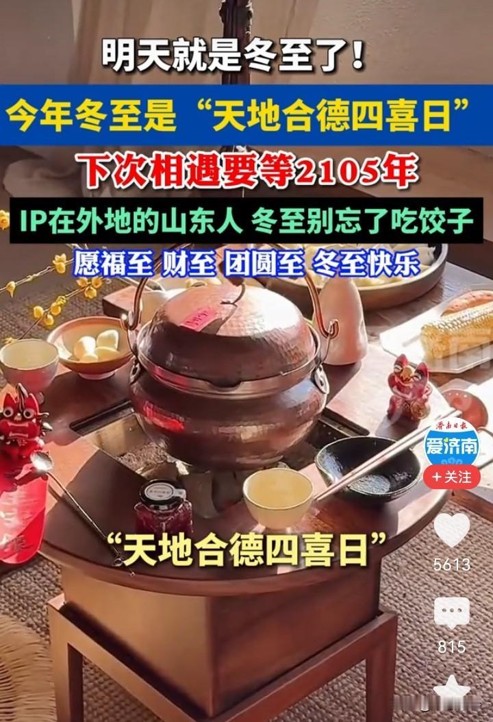 今天的冬至,可比几天后的平安夜、圣诞节重要多了。大家记得汤圆、饺子吃起来,还顺带许许愿啊,心诚则灵,很可能努力实现了呢! 大家把手机日历打开看看,今天12月21日,冬至,还是“甲子日”! 何为甲子?60年一甲子,应该都知道吧。也就是说这是六十甲子第一天,意味着所有霉运清零,重头开始,万象更新! 更让人想不到的是,今天还是元始天尊的诞辰,以及传说中的“天赦日”。“天赦日”是传统民俗中说的,玉皇大帝赦免人间罪过的特殊日子,象征上天赦免万物、以前的磕磕碰碰都会被原谅,因此万事顺遂…… 冬至,加甲子,再加“天赦日”,如此“天地同流”的大吉兆,错过就要再等80年,到2105年才再来一次了! 我们不搞封建迷信那套,但是,希望是世界上最好的东西! 在如此好的日子里,我们图个吉利,在吃着汤圆、饺子等美味的时候,许愿把过去的憋屈事都翻篇,许愿创造实现更美好的生活,努力再努力,加油再加油,说不定就实现了呢!冬至 书慰我心
