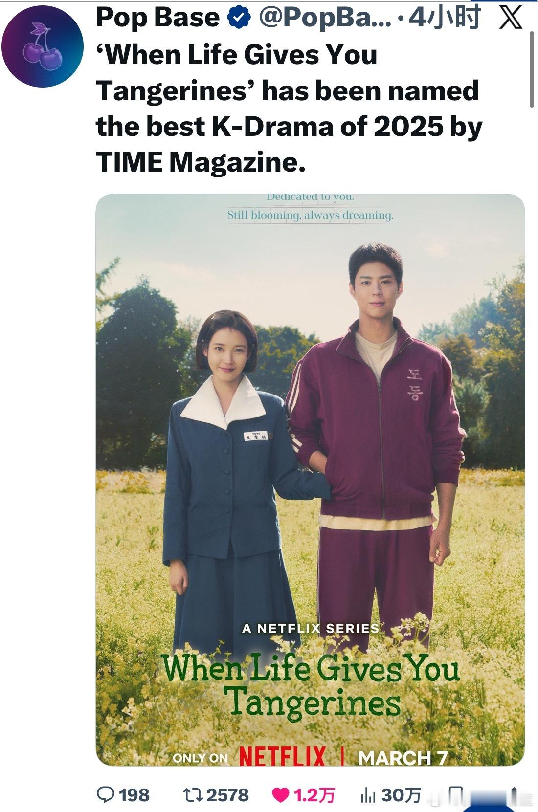 【热推1.2w赞】IU李知恩 朴宝剑主演的《苦尽柑来遇见你》被《时代》杂志评选为2025年最佳韩剧🍊各类年末榜单总结都是在证明🍊有多爆苦尽柑来遇见你