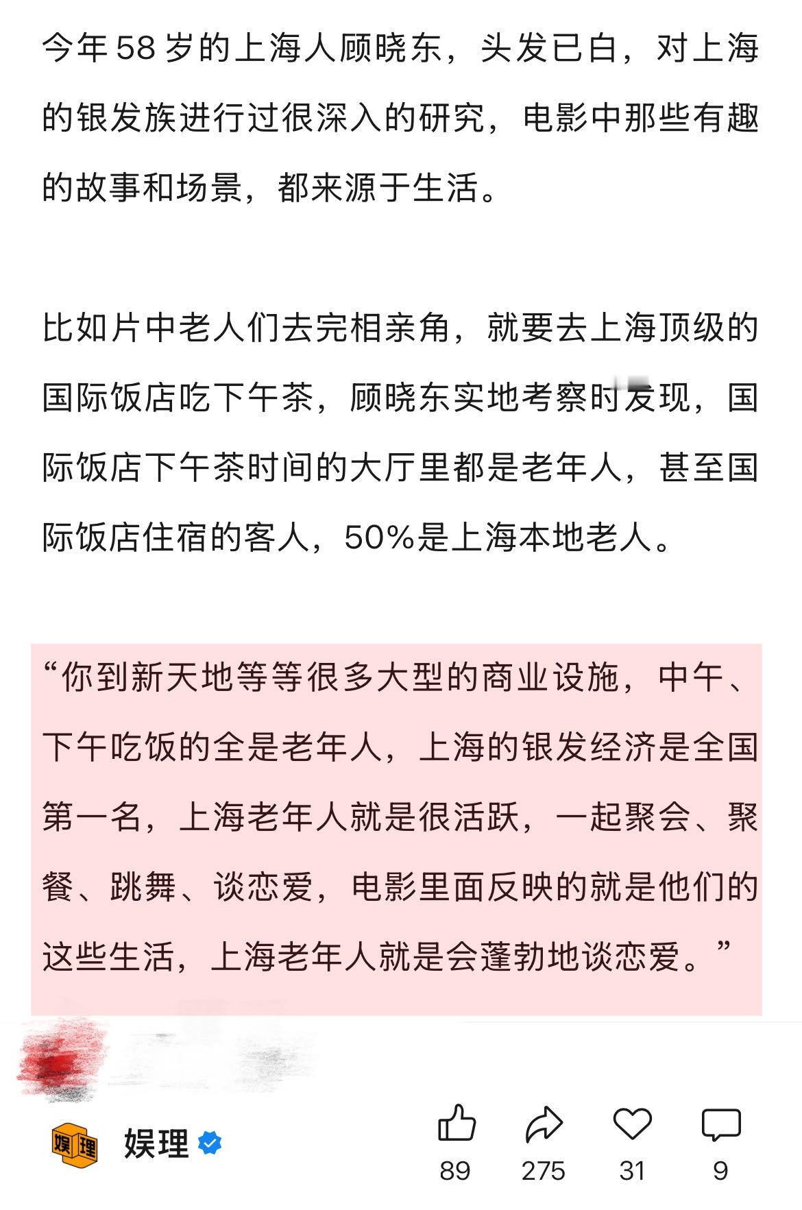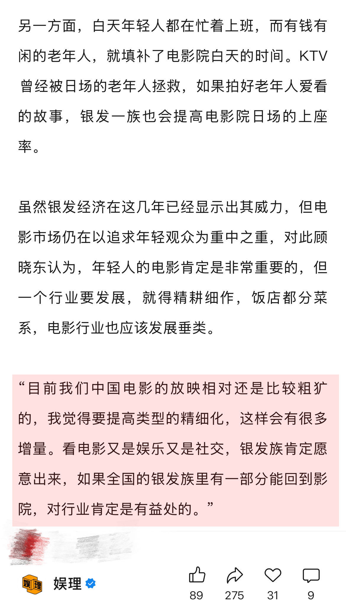 菜肉馄饨做对了什么主创回应菜肉馄饨为何能小爆 上海老年人丰富的生活不仅是故事的基础,银发经济也是增量。在《菜肉馄饨》的线下宣传点位,会有工作人员教老年人购票。如今网上常说电影票贵的问题,但制片人顾晓东在线下发现,老年人对于票价其实接受良好。“上海的老年人还是比较有消费能力,他们看到电影票价就会说是一杯咖啡的钱,不贵不贵。”