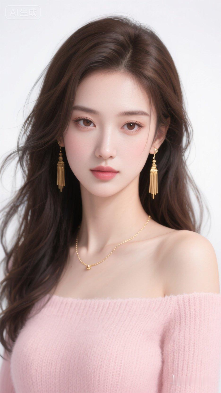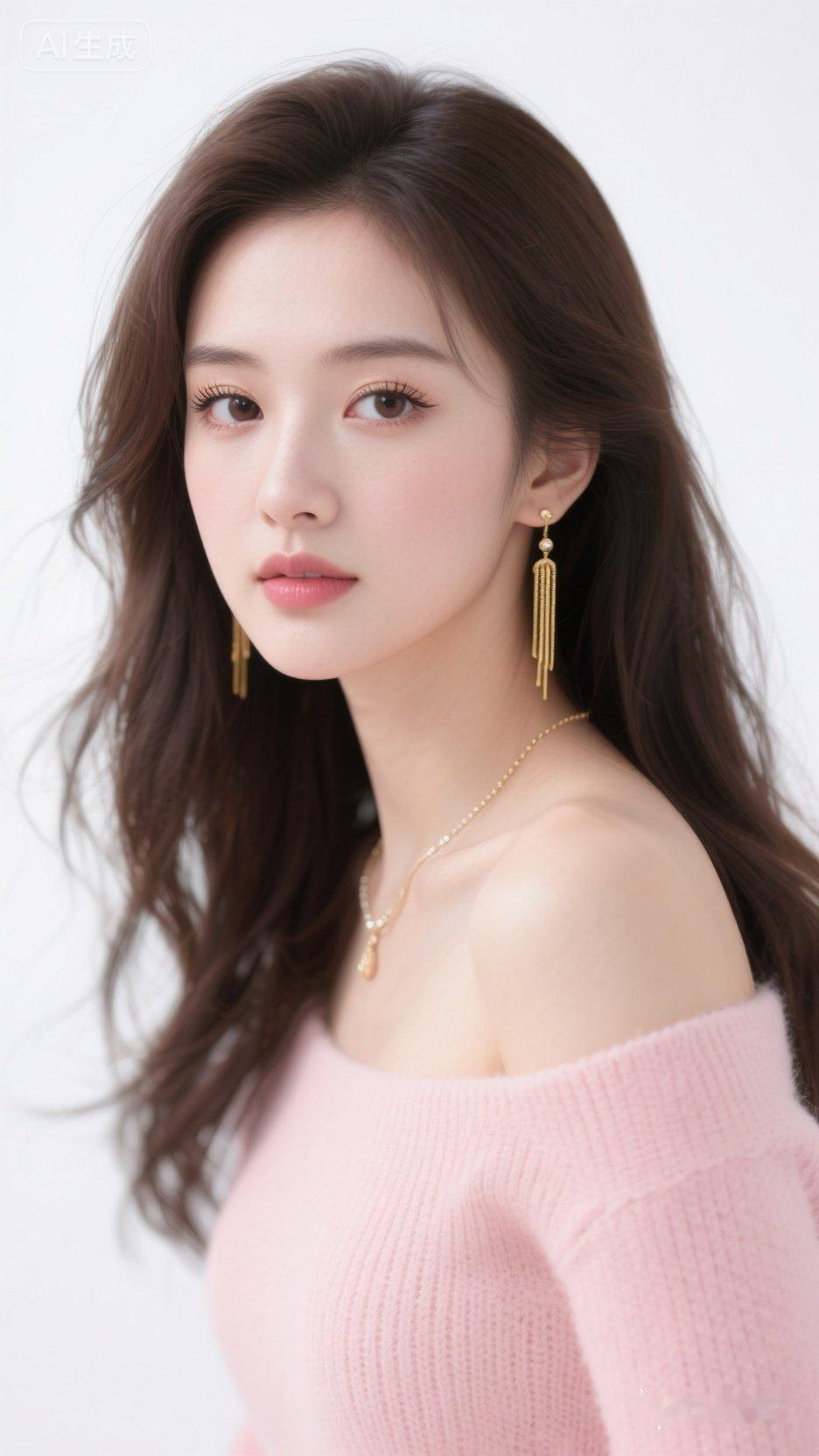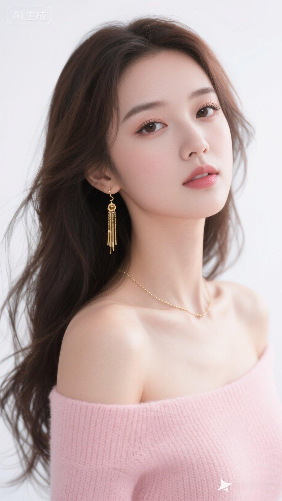 温柔粉少女,甜美妆容,优雅耳环,清新自然。