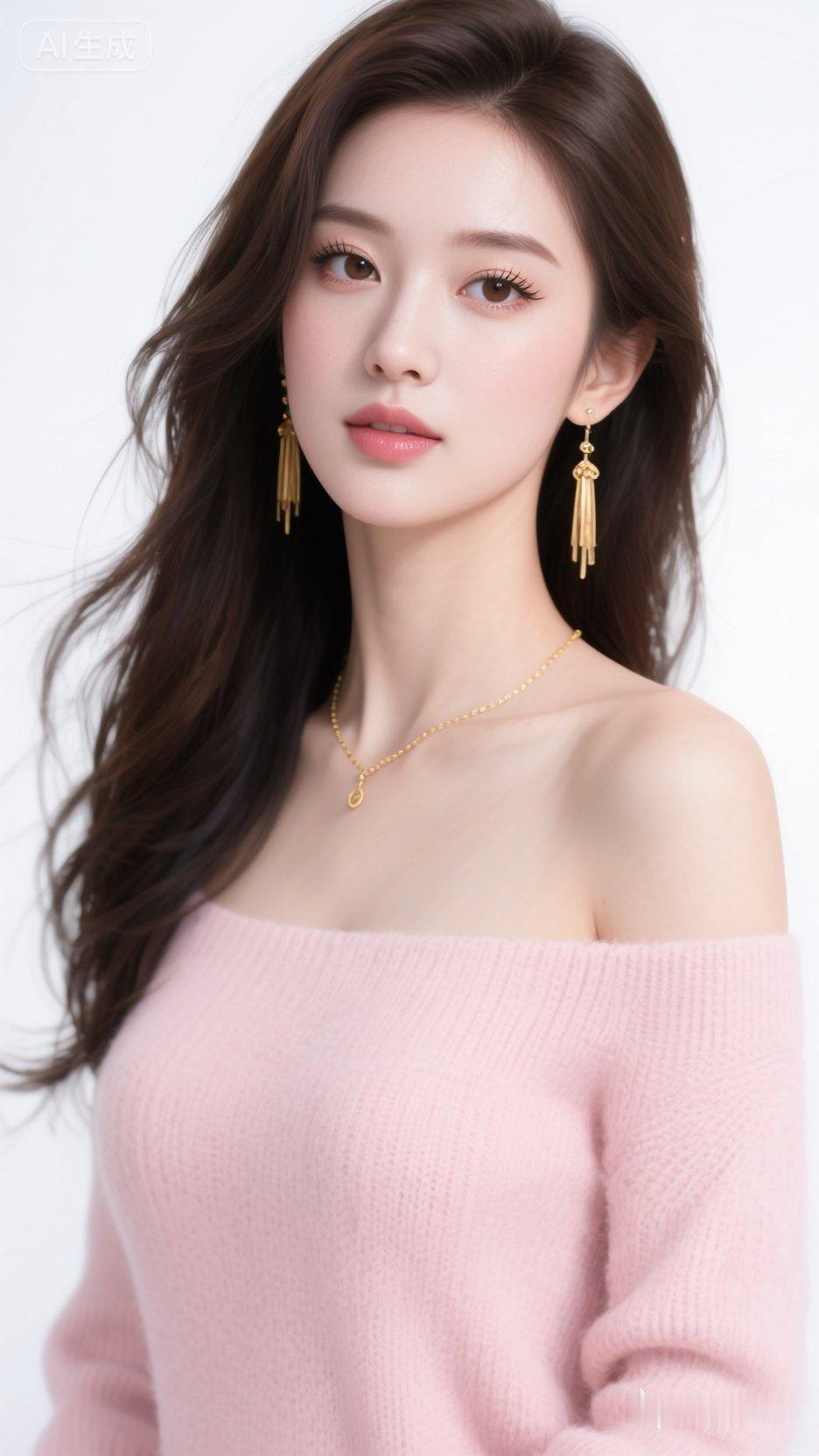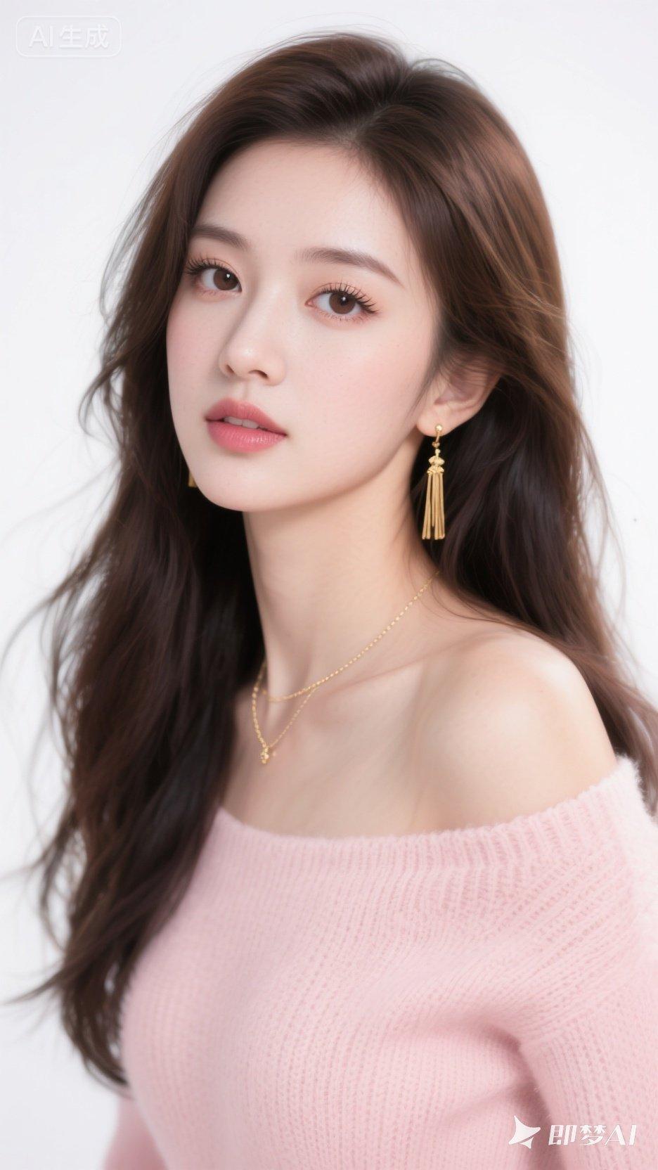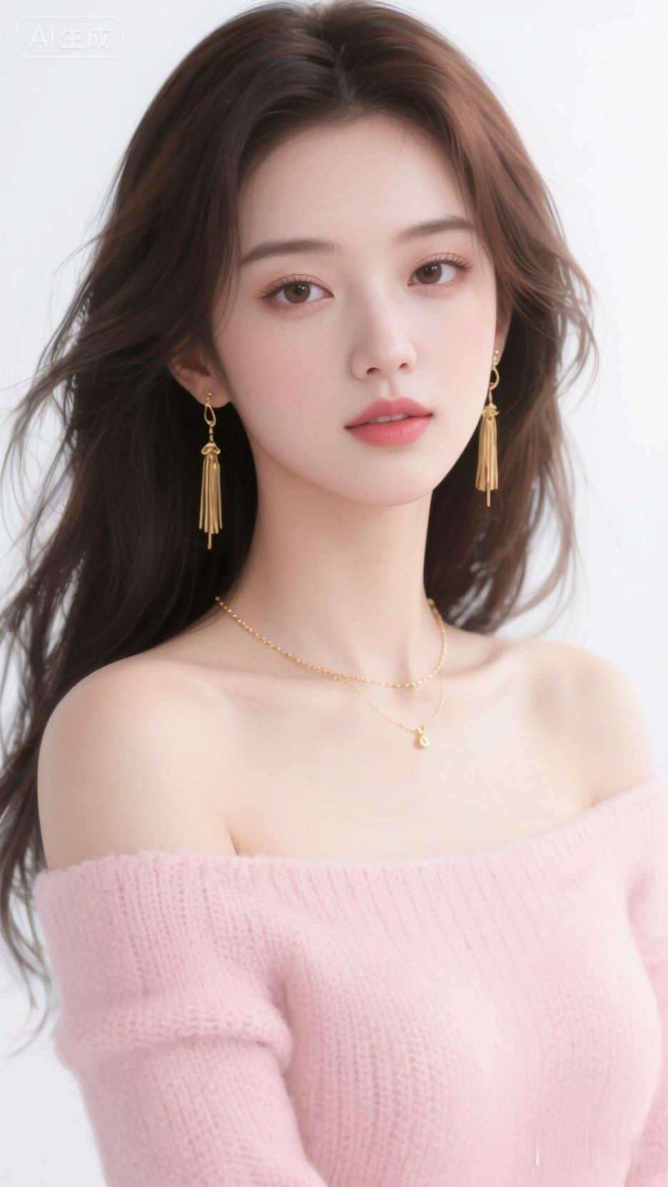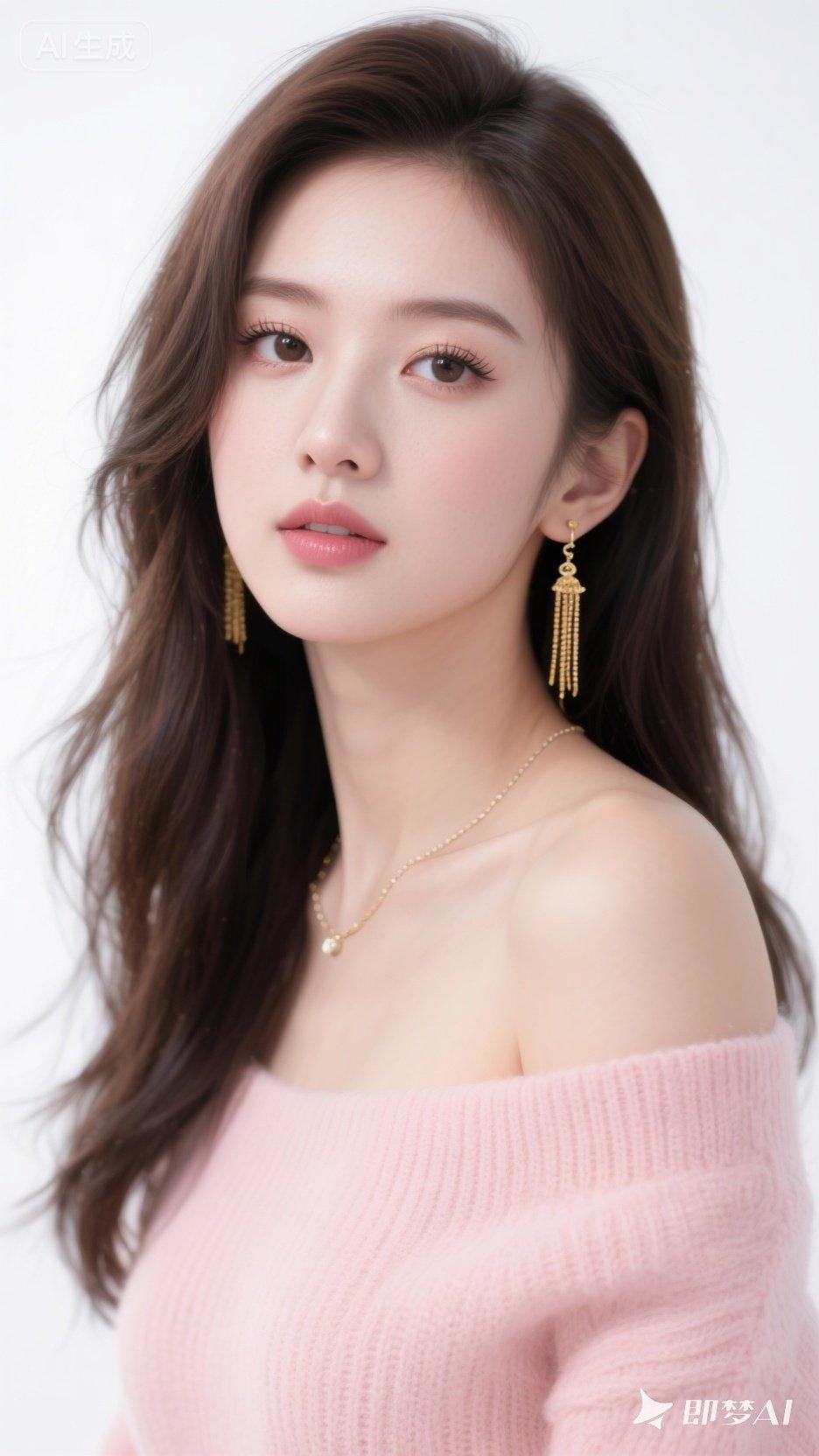 温柔粉少女,甜美妆容,优雅耳环,清新自然。