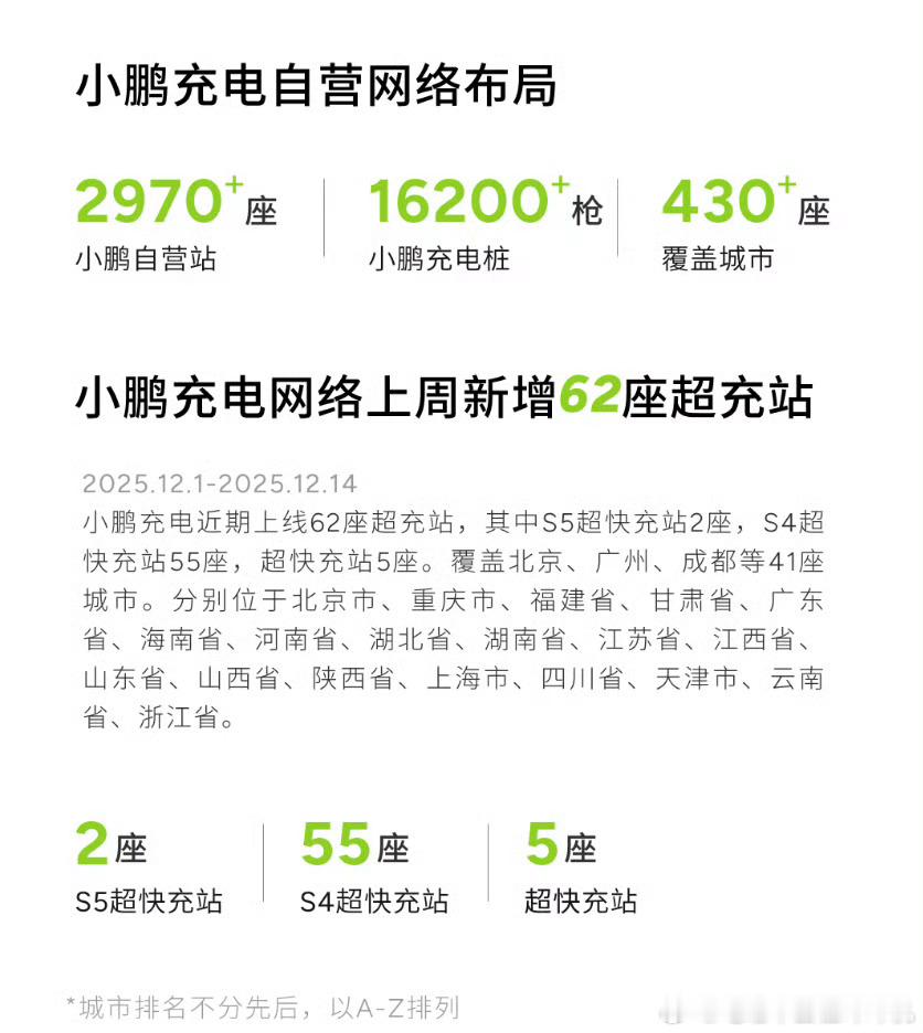 小鹏自营充电站已经达到2970座,充电桩16200个,到2026年小鹏将实现10000座自营充电站的战略目标,其中4500座为液冷超快充站。整日来看,今年全国多了非常多的充电桩,节假日出行抢桩的概率又降低了