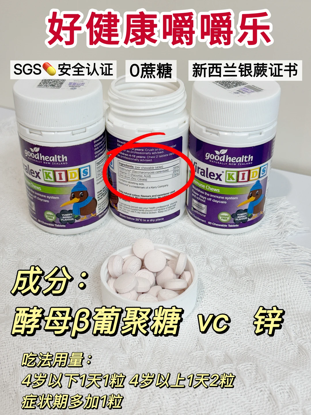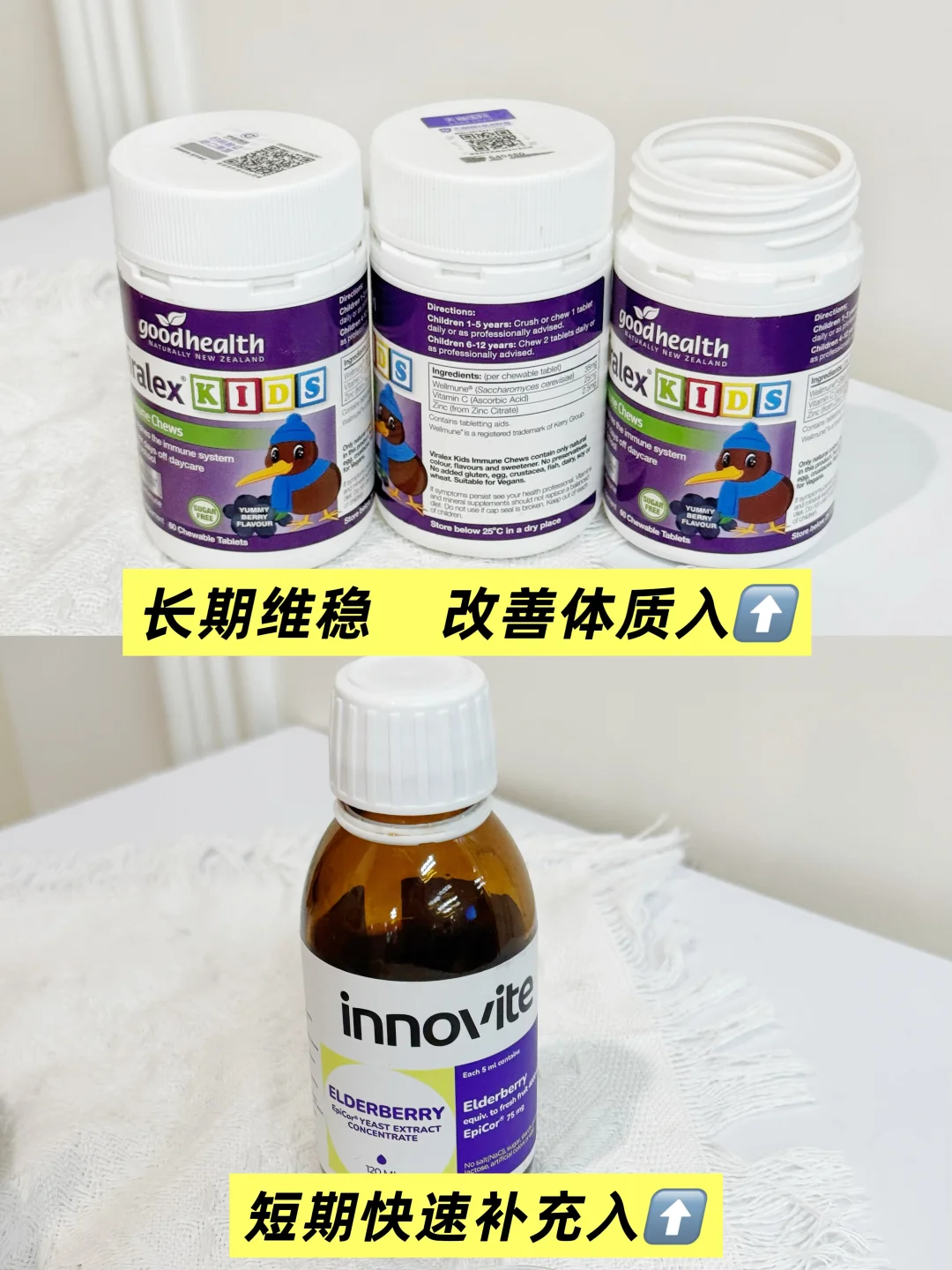 儿童免疫力补剂zui火的就差不多是这两种了,都是对免疫力有帮助的,但是具体作用却不同! 不用纠结,根据你的核心需求结合孩子体质,对号入座👇 正好我们家今年两款都吃了,接骨木莓是上半年4-6月份吃的,那会孩子正好合胞感染期,断断续续吃了两个月的接骨木莓,虽然好了,但是我还是想从根本上改善孩子体质,就趁618换了嚼嚼乐葡聚糖,现在也吃了5个月了,我从业内人士的角度给大家分享一下我们家吃这两款的感受 💛E络维 接骨木莓 【核心成分】花青素 接骨木莓:增强抗氧化能力 激活免疫 酵母:增强免疫力 【服用感受】 4月份那会合胞高发期,我家也中招了,发热还一直咳嗽,而且还有痰,除了大白开的奥司他韦,还喝了复方甲麻口服液,到晚上睡觉的时候说喉咙痛又给喝了点接骨木莓,喂得多了才能缓解一下孩子喉咙痛,第二天体温也能下降一点,但是容易反复,拖沓了半个月才差不多恢复 【人群建议】症状期急救 ❤ 嚼嚼乐葡聚糖 【核心成分】 儿童免疫力铁三角 Wellmune酵母β葡聚糖:锻炼身体主动免疫,增强整体免疫力,保护身体三道免疫防线; vc:抗氧化、加快免疫速度、补充身体缺失元素 锌:补充微量元素 【服用感受】 这个是长期调理体质的,所以一开始我也做好了见效慢的准备,差不多吃了三个月,10月份左右,往年这个时间段就是我家孩子必会中招的阶段之一,今年这个时间段还算平稳,虽然也小小的发热了一下,但是吃了嚼嚼乐加上快克,第二天就退烧了,到第二天傍晚就差不多恢复活力了。一直到现在没怎么再有过不舒服。 【人群建议】 体质差,容易中招、容易敏敏的1岁以上儿童 最后一句话总结: ✔ 体质太差,容易中招容易敏敏的、想要调理体质、增强整体免疫屏障、少中招的可以选【好健康嚼嚼乐】 ✔ 正在中招的,想要快速恢复的可以选【接骨木莓】