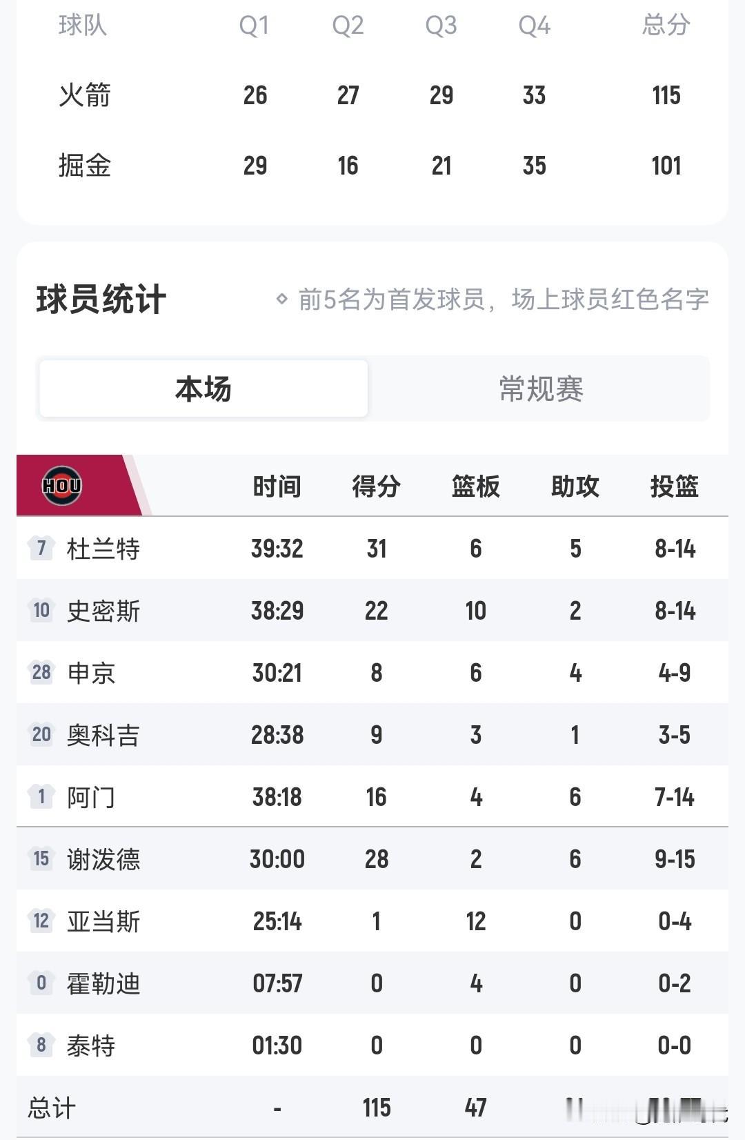 火箭当家球星杜兰特真是太喜欢后辈谢波德了,他在今天火箭客场以115:101击败掘