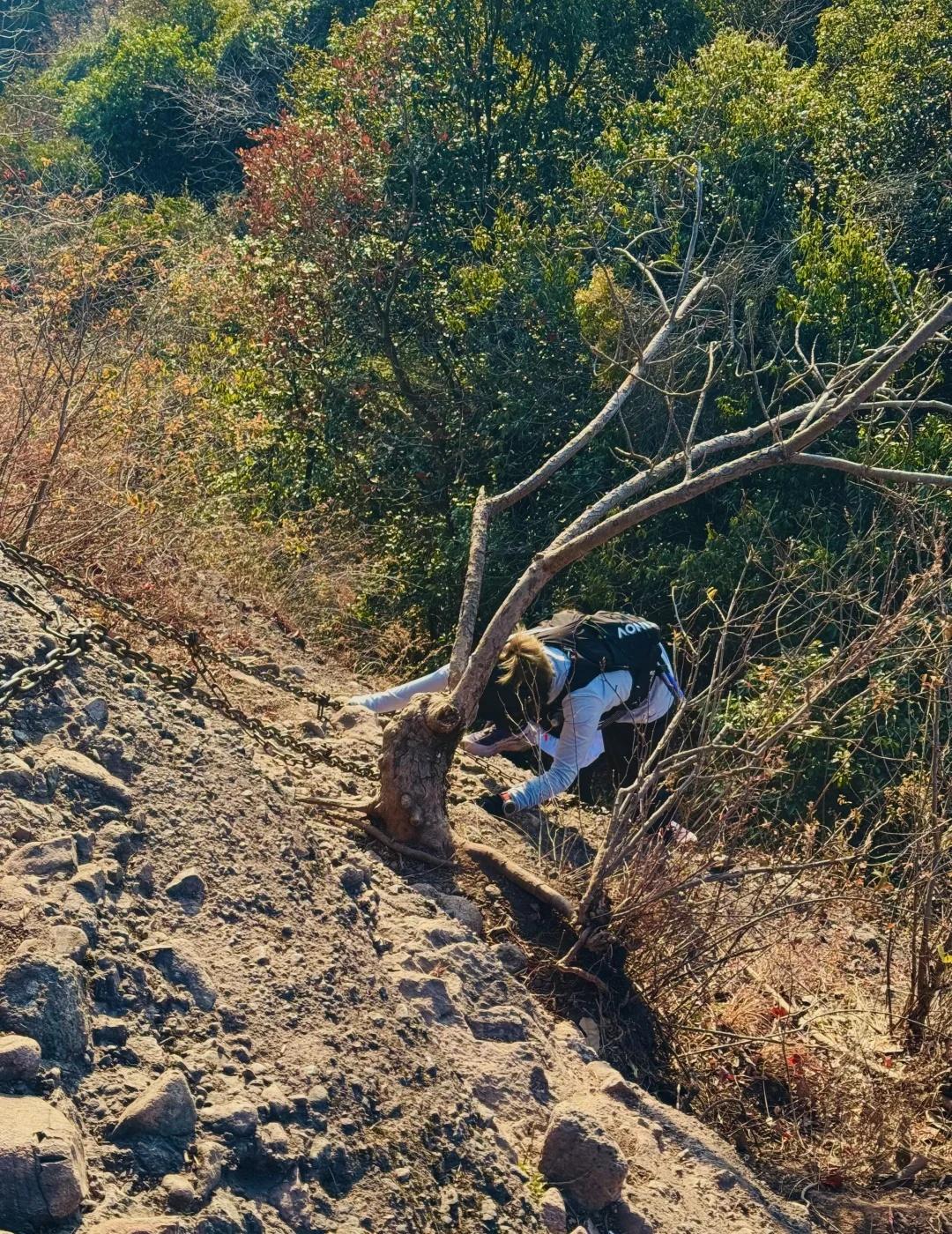 宁波徒步🍂丨晨见水衫黄,午见青山绿 今日徒步丨卖柴岙-三仙洞24.5km环线 徒步路程:24.5km左右 累计爬升:1280米左右 预计耗时:5-9小时左右 六只脚轨迹:9594017 车子导航至:奉化规划四路(在路边停车即可,有很多车子停着) 本路线从卖柴岙水库(铁链版部分)-奉化三仙洞-卖柴岙水杉林-卖柴岙蝙蝠洞[偷笑],实际是由两条徒步路线组成,我们出发的较早,8点多卖柴岙还没啥人,适合拍照出片,按照轨迹8.7公里处去往三仙洞路段稍野,参考图7[吐舌]三仙洞路段路迹较多,相对于卖柴岙段略野,需要时刻查看轨迹[嘻嘻R] 个人评价:此路线难度不适合亲子,虽然爬升只有1250左右,但是部分路段略野,且卖柴岙通往三仙洞一段走的人较少,树叶很厚[偷笑]只适合冬天行走,适合徒步进阶人群,最好也早点出发,毕竟冬天天暗的比较快,秉承下山早原则[惊喜]祝大家在山里都能开心快乐[嘻嘻R] 徒步丈量世界 每周一山 宁波徒步路线 我的徒步日记 卖柴岙水库 宁波赏秋徒步路线 徒步路线推荐