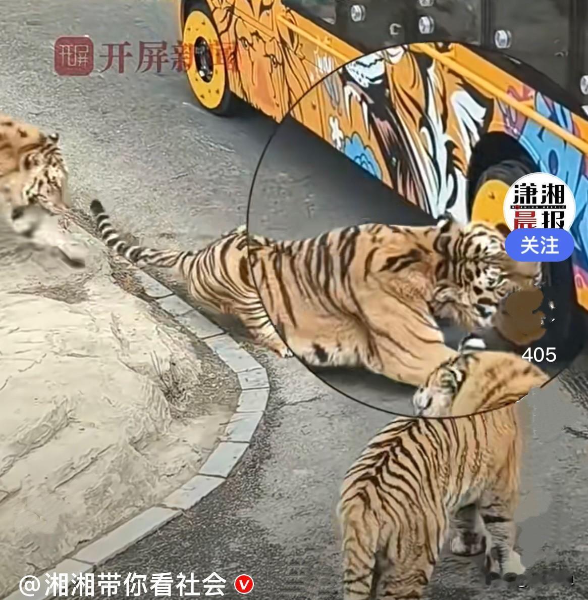 近日,辽宁大连一动物园,观光车停在了有老虎的地方,一只老虎不知怎么想的,要汽车轮胎就不放,它是不想让车走还是想把车轮胎咬坏? 结果咬轮胎的老虎牙还被卡住了,旁边的老虎拍它,意思是你虎啊,别咬了,咬不动,那个不是吃的,咬轮胎的老虎反过来就给那个老虎一巴掌:嘎哈啊?你扒拉我嘎哈”……