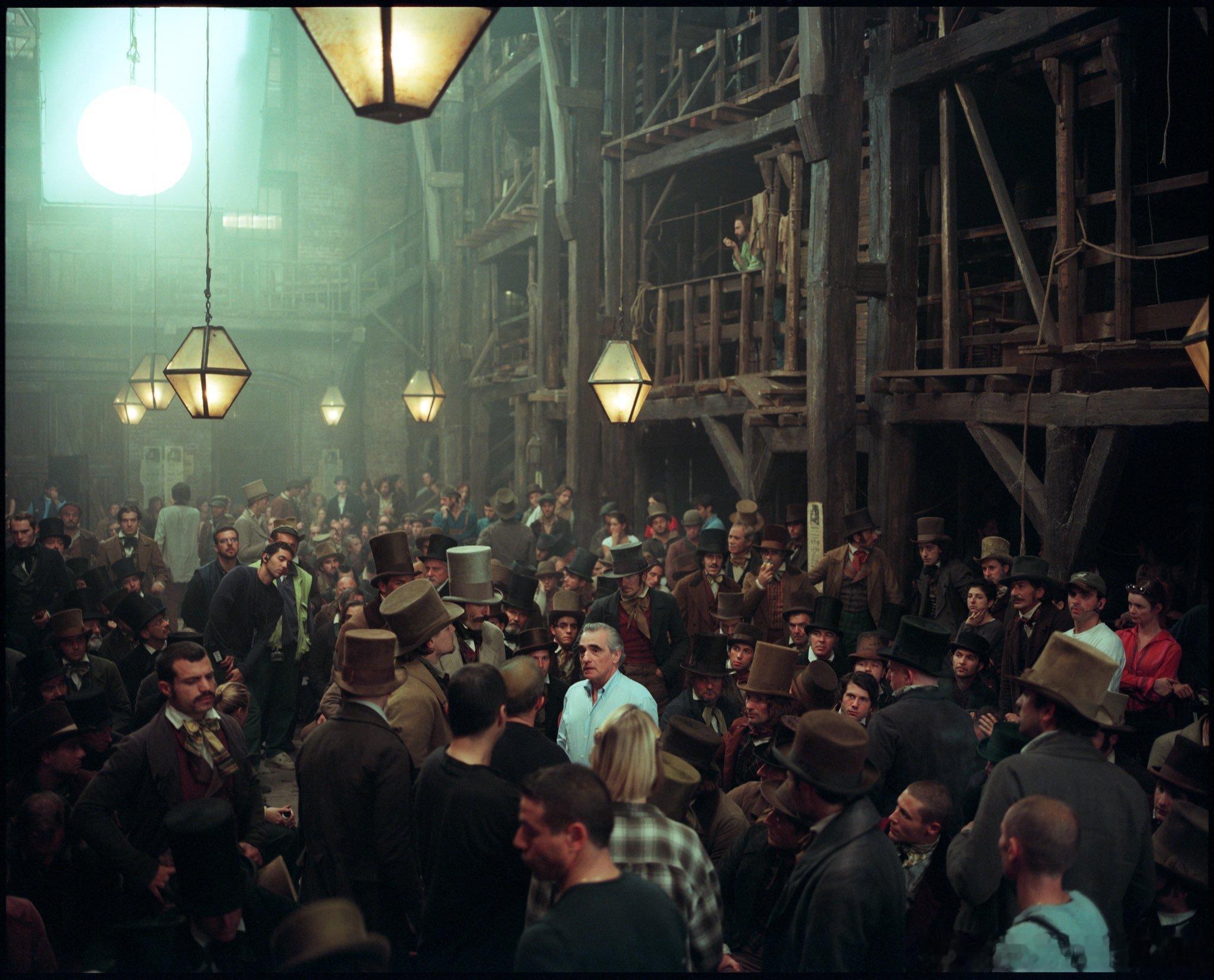 马丁·斯科塞斯在《纽约黑帮》的一张片场照