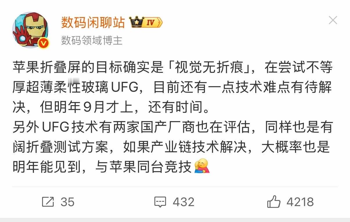 苹果折叠屏的目标是~视觉无折痕,这有点难啊。而且刚买的时候看似没有折痕,用一段时间还是会越来越深的。