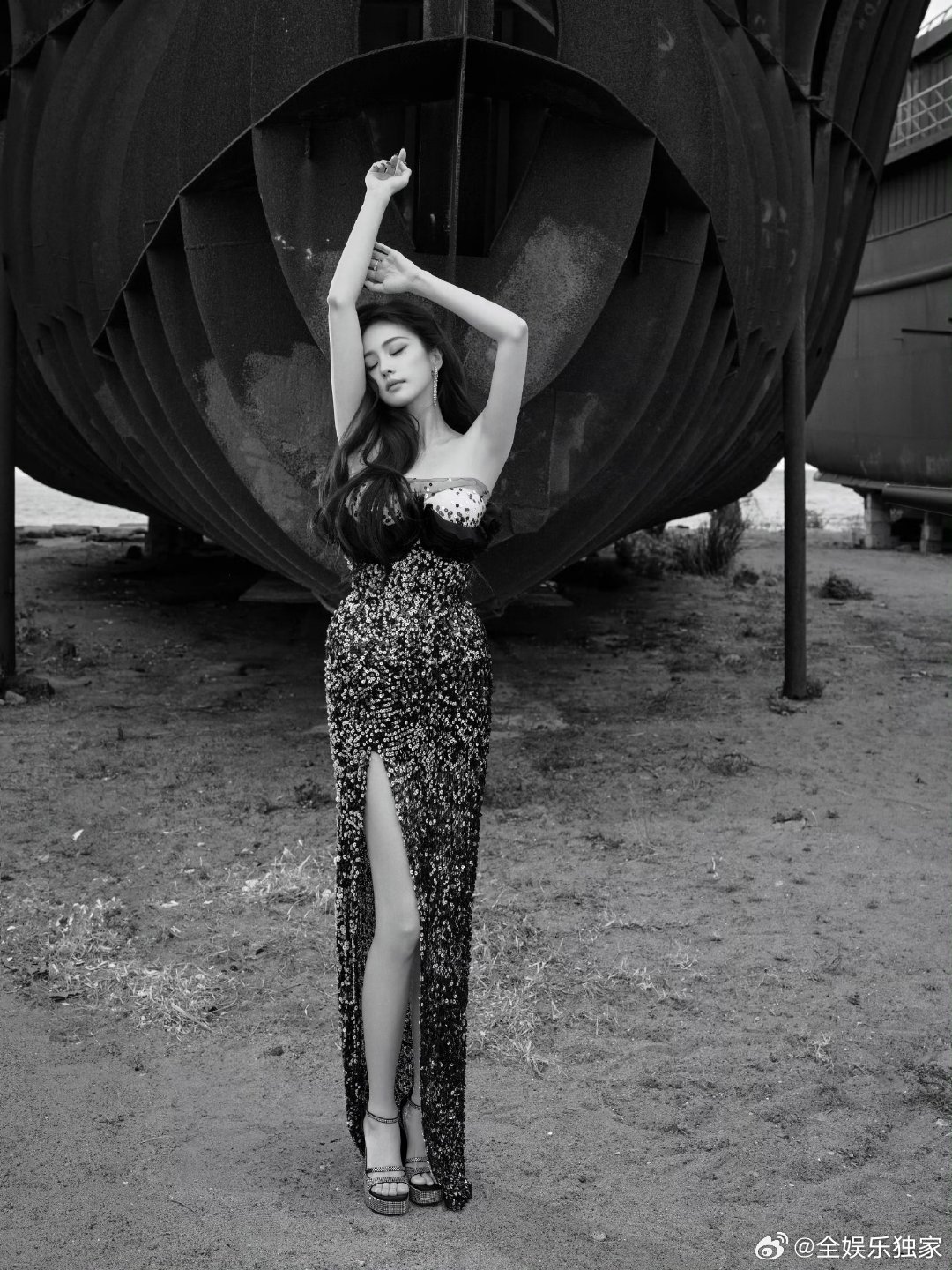 但凡张天爱身上有一点赘肉都穿不了这个衣服