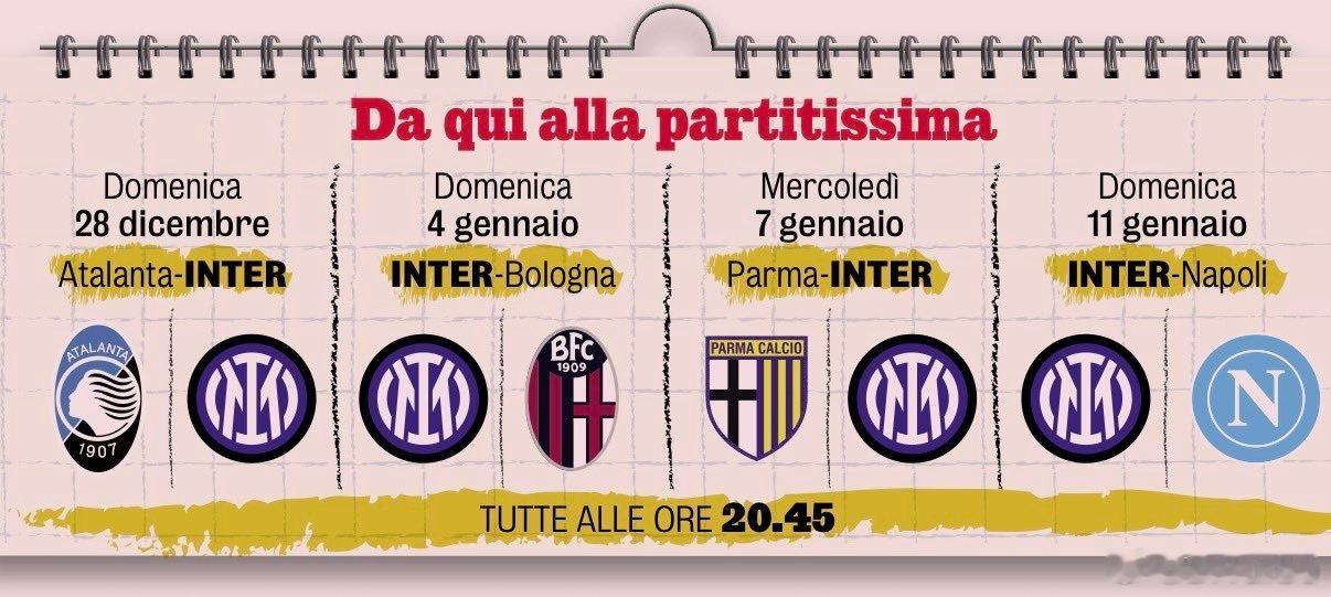 米兰体育报列出了接下来国米的4场比赛的赛程博洛尼亚4比3国际米兰那不勒斯2比0ac米兰热点现场 要面对亚特兰大 博洛尼亚 那不勒斯