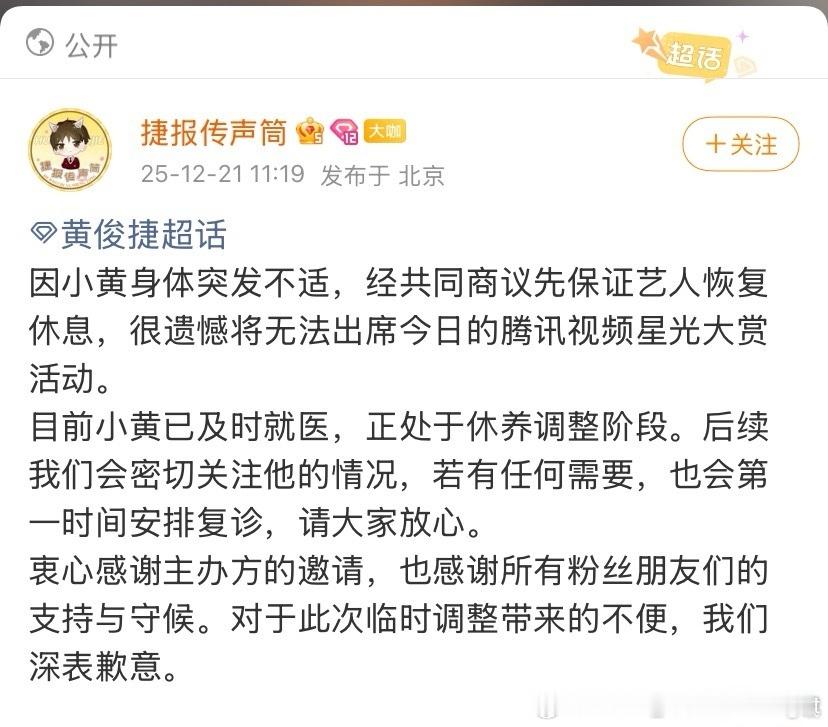 丁禹兮和黄俊杰都因为生病临时缺席了星光大赏,之前造型都做好了,还拍了出发图,可惜这次不能见面了,㊗️早日恢复健康
