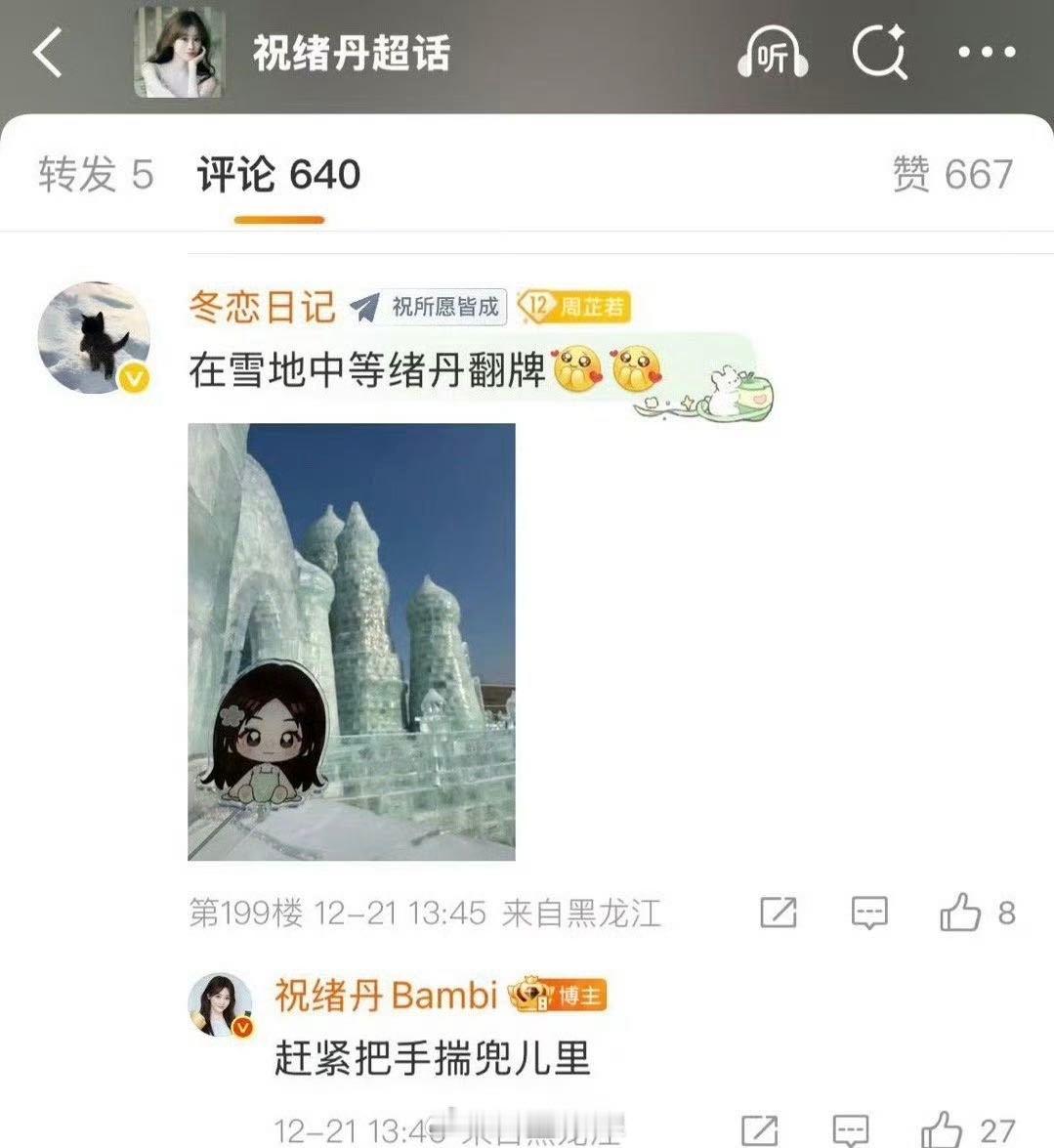 祝绪丹又文字直播了 看文字直播真是萌化谁了!又是问好吃的,又是让粉丝把手揣兜里,已经能想象到这个祝祝发这些话的认真和可爱了,这个冬至有祝祝很暖很安心!祝绪丹实时给粉丝报备