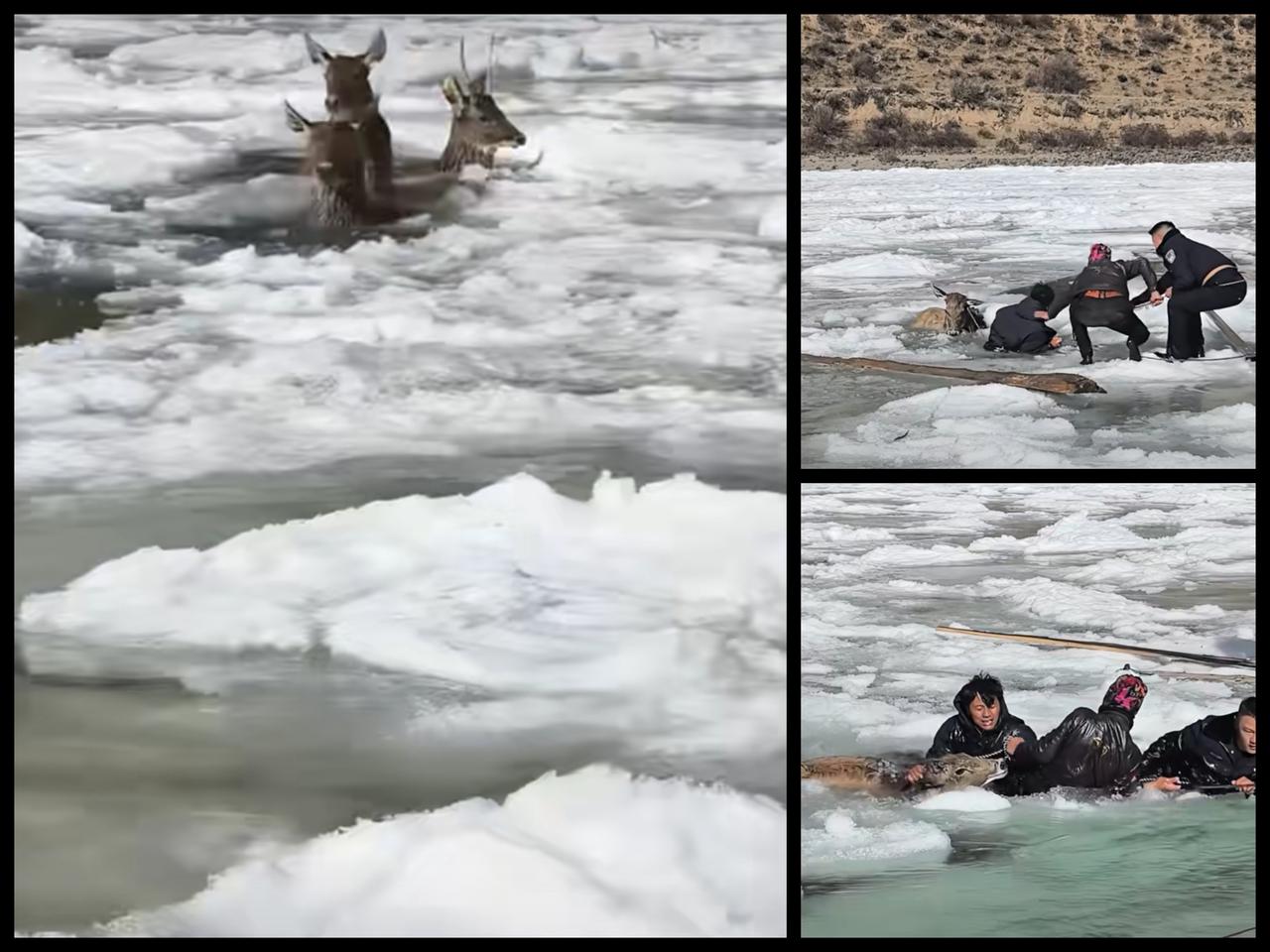 国家一级保护动物白唇鹿被困雅砻江冰窟,当地警民携手破冰一小时,顺利助3头白唇鹿脱困。每次看到在水里或在冰里救援的英雄,都替他们担心。希望能给警察,火警,交警等配备一些特种工作服,施救的时候也得保护咱们的警察啊,为善良的人们点赞!
