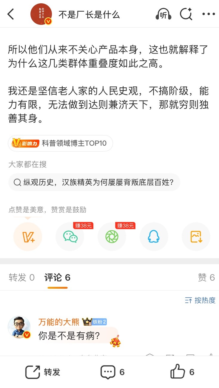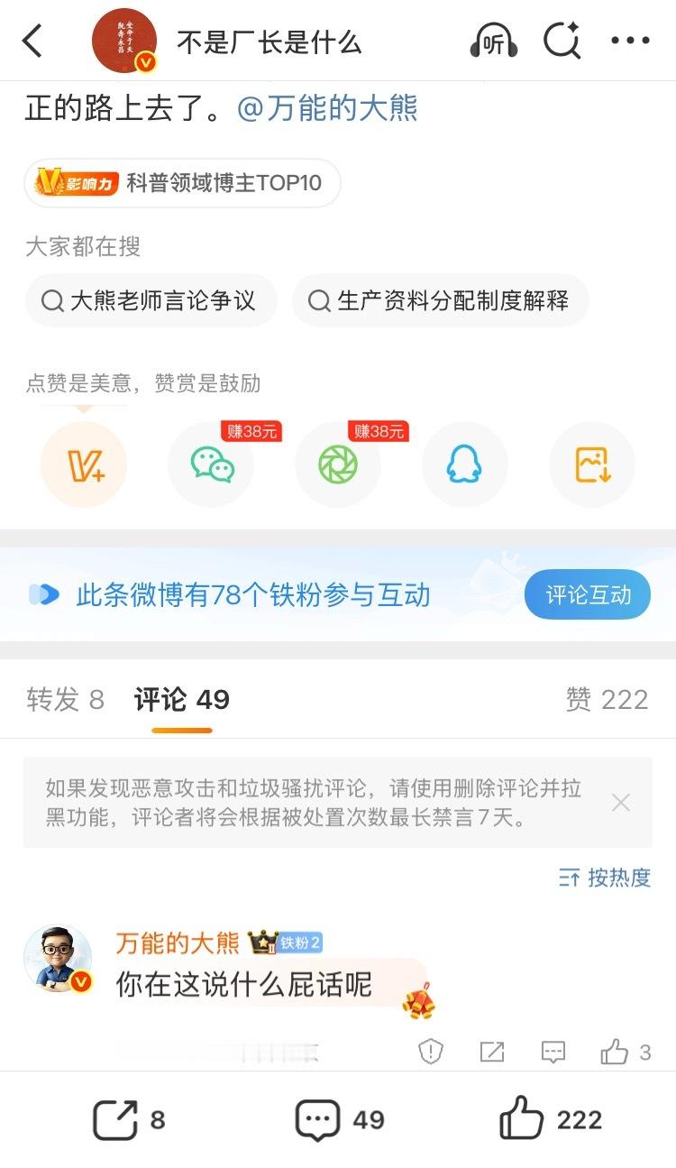 大熊老板这么敏感?看来熊老板还是知道他自己在说什么的,只是平常隐藏的够深,天天潜移默化的带这种节奏,以为别人不知道罢了。没事,我以后多分析,多揭露,大家一起多批判性的学习。