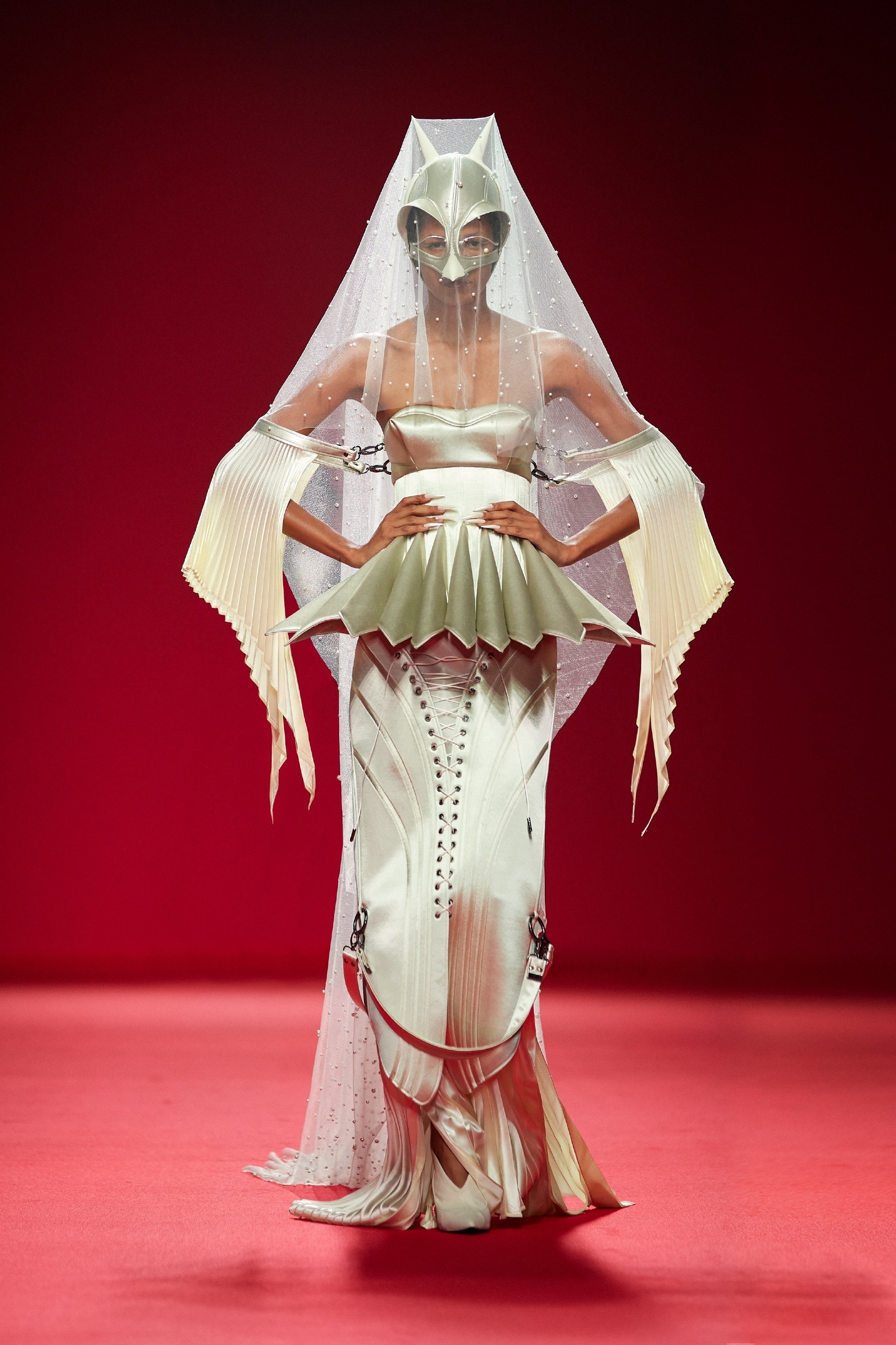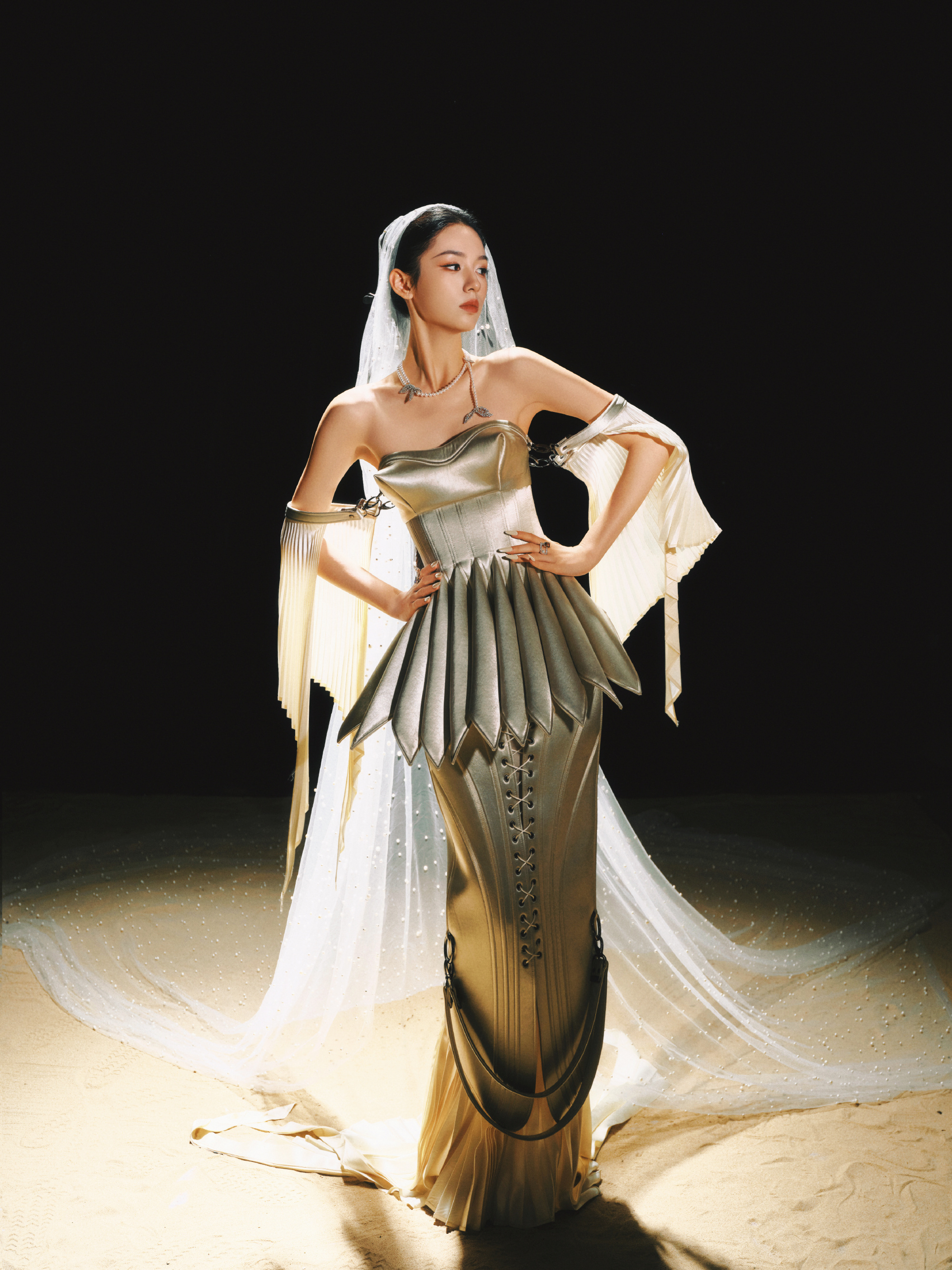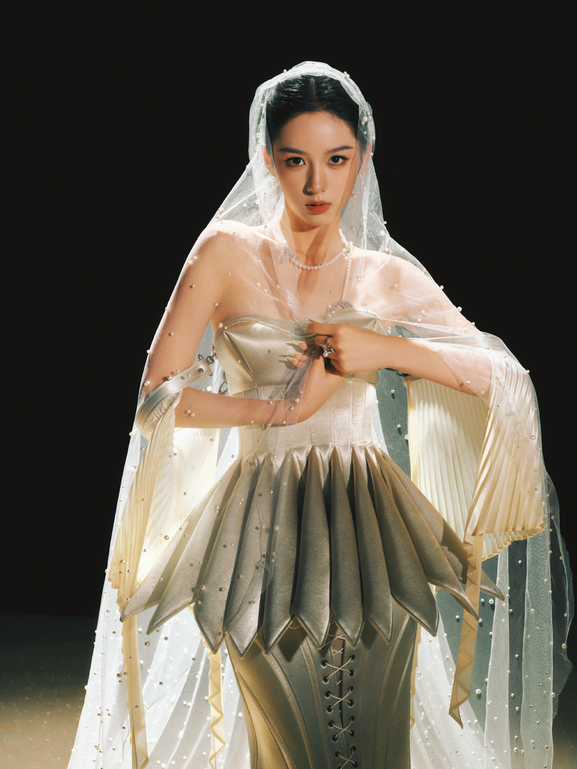 周也 x 腾讯视频星光大赏 手握利剑的珍珠美人,今日造型来自Robert Wun 2024 春夏高级定制 + TASAKI 珠宝,高定秀场Look的头纱是珍珠装饰的,恰好呼应TASAKI,别出心裁👏风格大赏星光大赏红毯